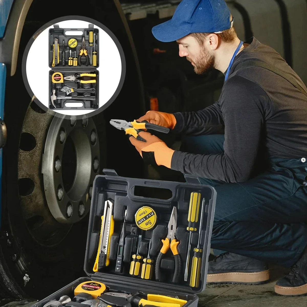 8/9/12/13Piece Tools Set General House hold Hand Tool Kit with Plastic Toolbox Storage Case Used to Car repair And home Repair