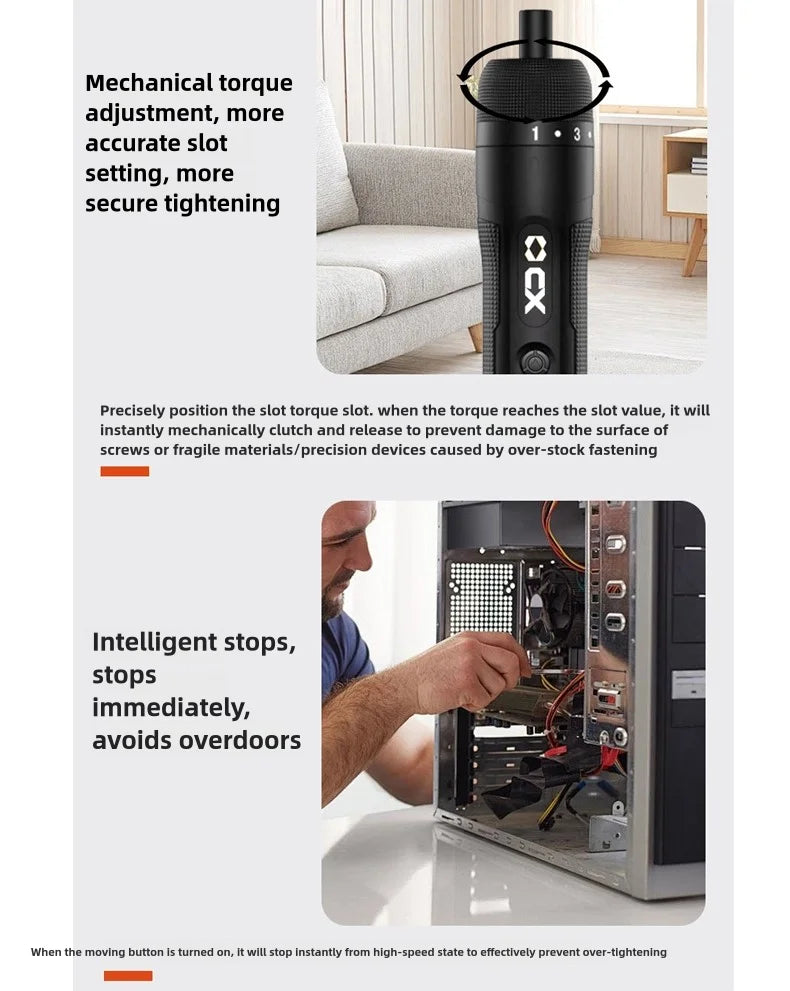8-Speed Torque Cordless Electric Screwdriver Rechargeable 2000mAh Mini Drill 3.6V Power Tools Set Household Maintenance Repair