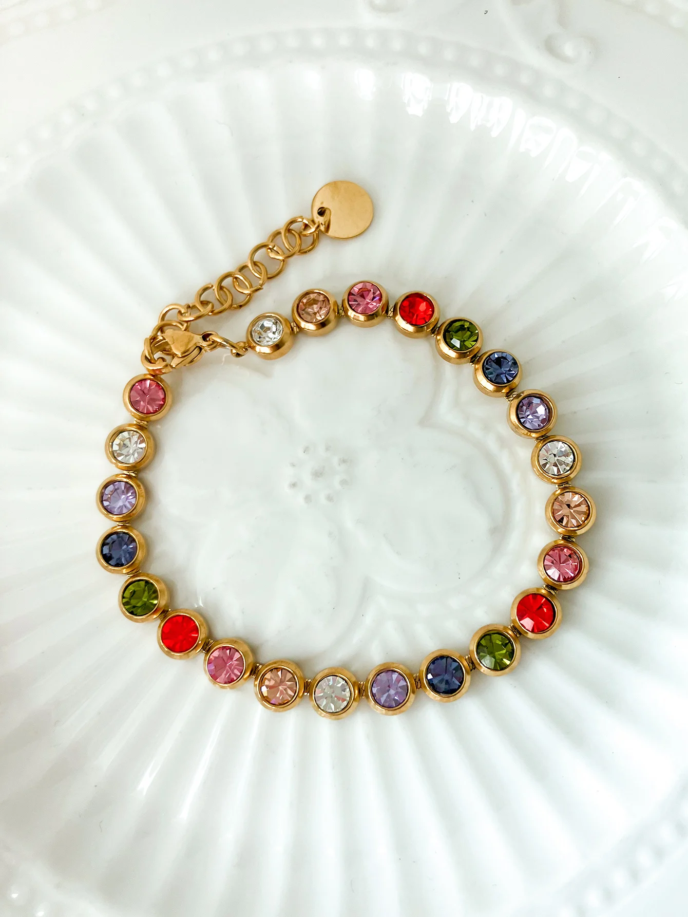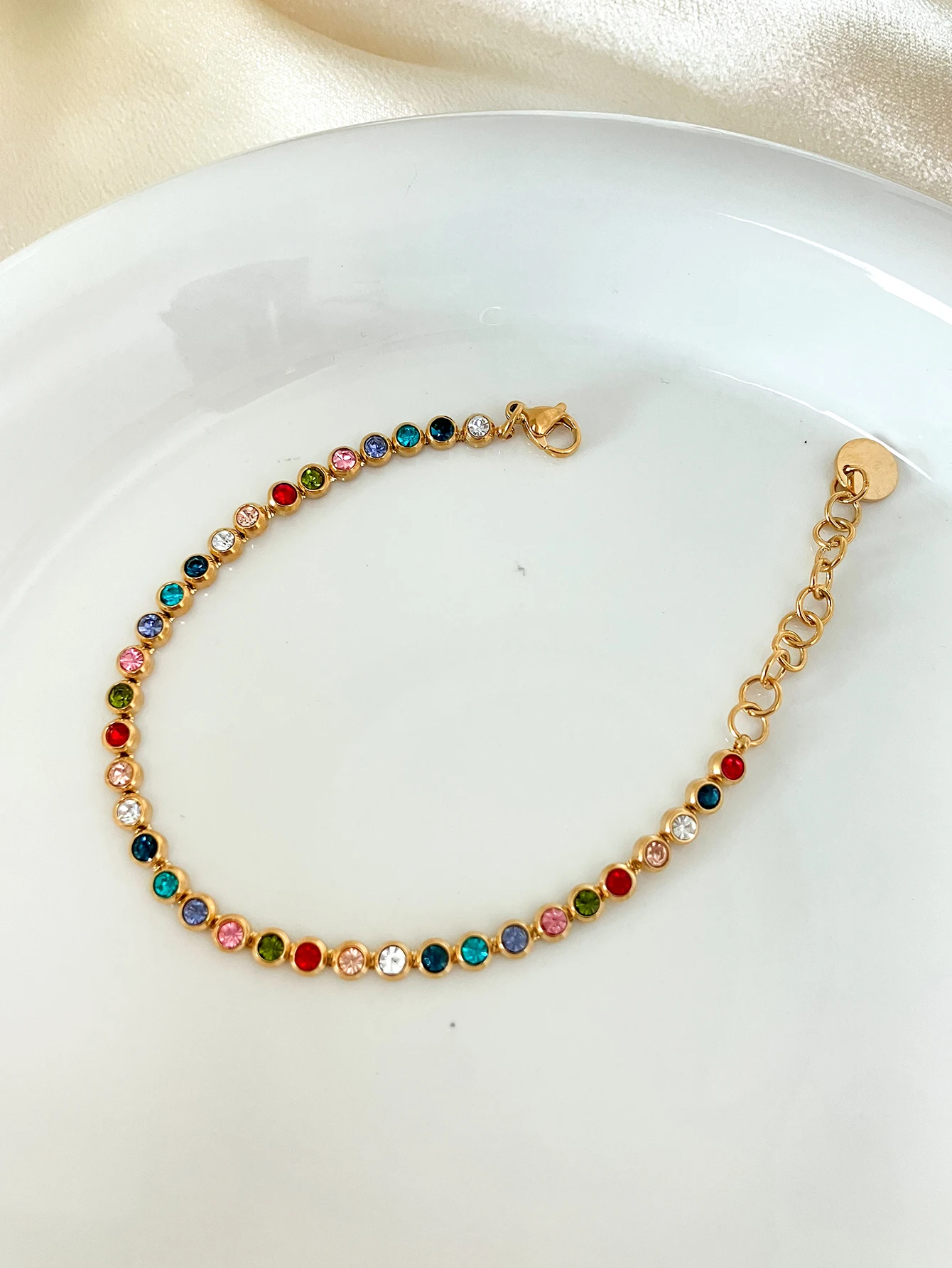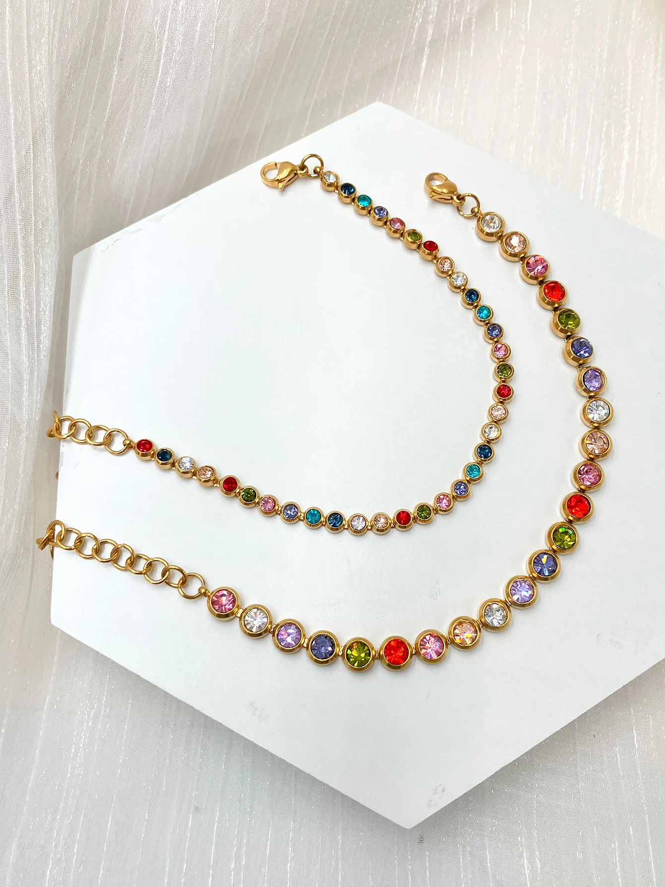 A pair of French retro and fashionable stainless steel women's colored zircon bracelets, daily commuting gifts, dating parties