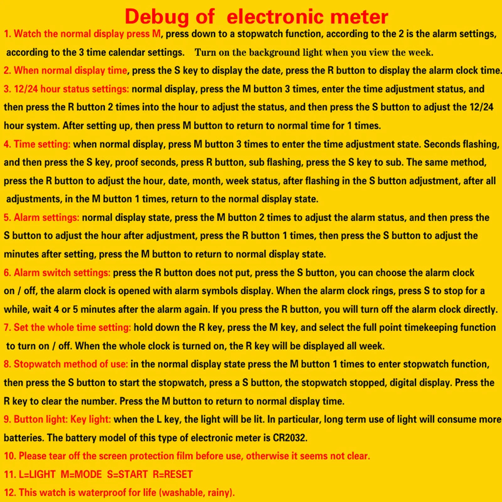 Watch Function: Stopwatch, Alarm,Lighting dispaly, water resisit Time, Week, Date, Month display Multifunctional sport, 12/24 Hourly