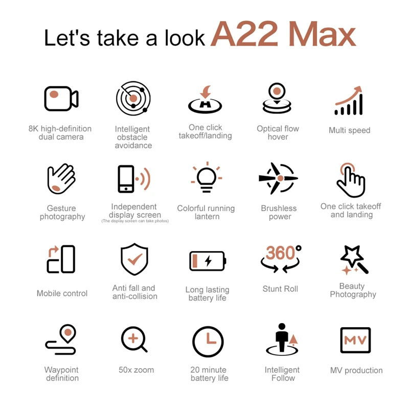 A22 Max Drone 8k Esc Dual Camera 5g Hd Aerial Photography Wifi Optical Localization Obstacle Avoidance Brushless Rc Drone
