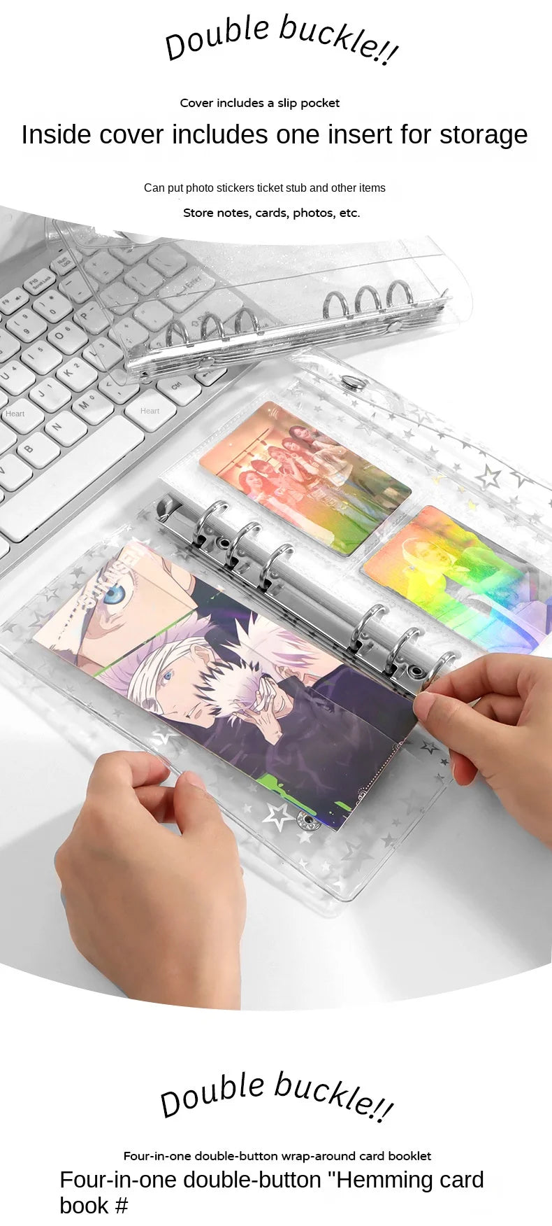 A6 6-Hole Narrow Half Laser Full Sky Star PVC Double Buckle Flip Cover Three Fold Loose Leaf Notebook Detachable Cover