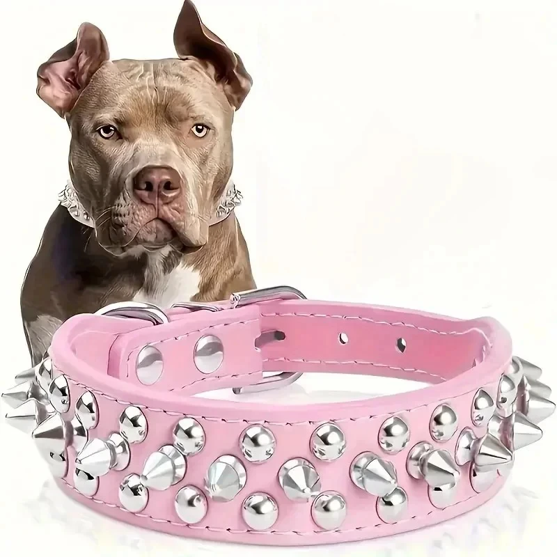 Adjustable Spike Pet Dog Collar Neck Strap PU Leather Punk Rivet Dog Collar Pet Collar Strap Set Suitable for Small Dogs and Cat
