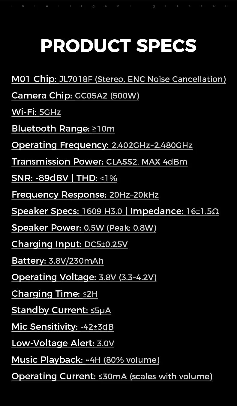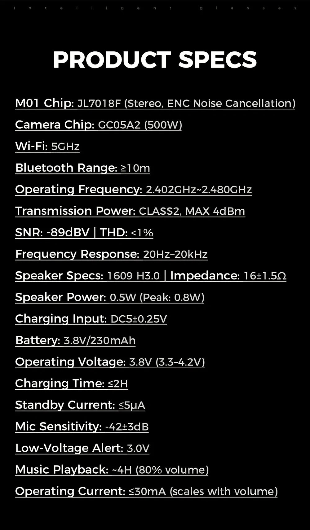 Equipped with cutting-edge Wi-Fi 6 and Bluetooth 5.3 protocols,these glasses deliver ultra-low power consumption, blazing-fast data transfer, and rock-solid device connections redefining seamless wireless performance.