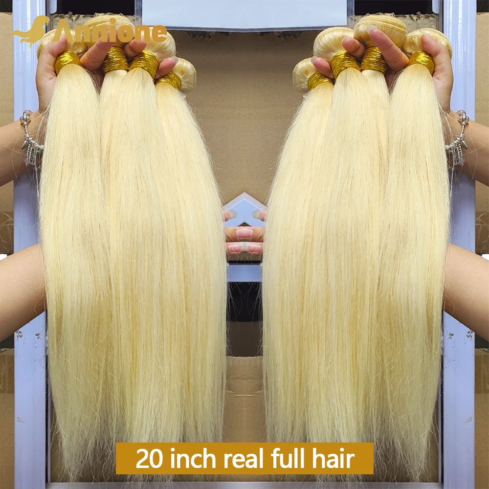 Annione 613 Human Hair Bundles 12A Straight Human Hair Bundles Raw Human Hair 100% Blonde 3/4 Bundles Hair Extensions For Women