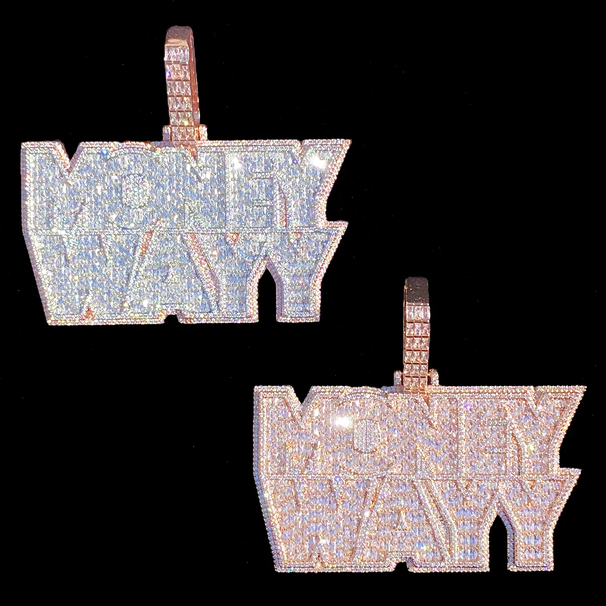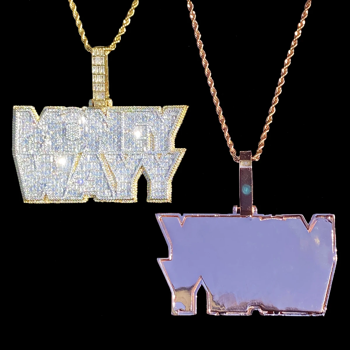 Aokaishen Iced Out Money Wayy Necklace Pendant for Men Prong Setting Real Gold Plated Hip Hop Jewelry