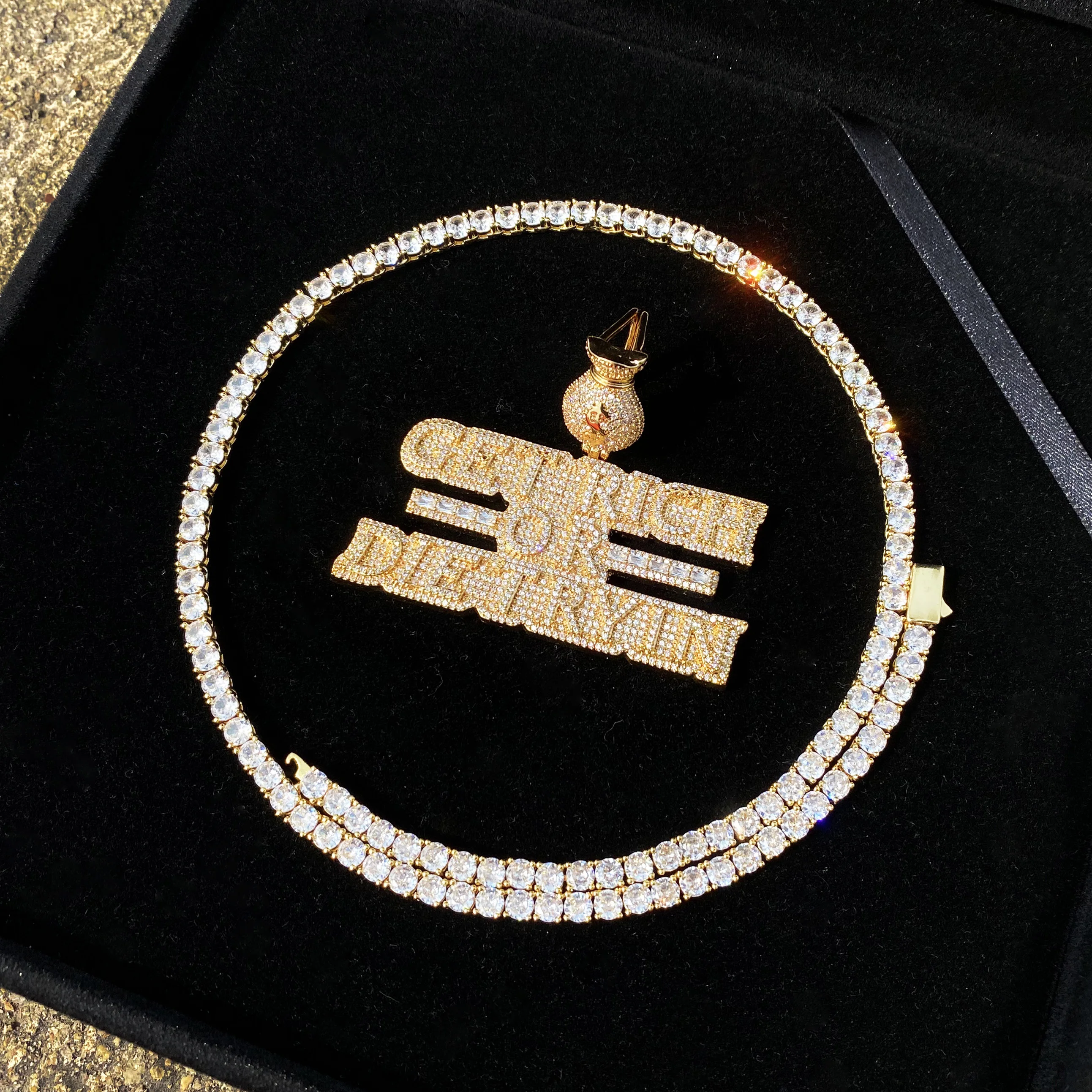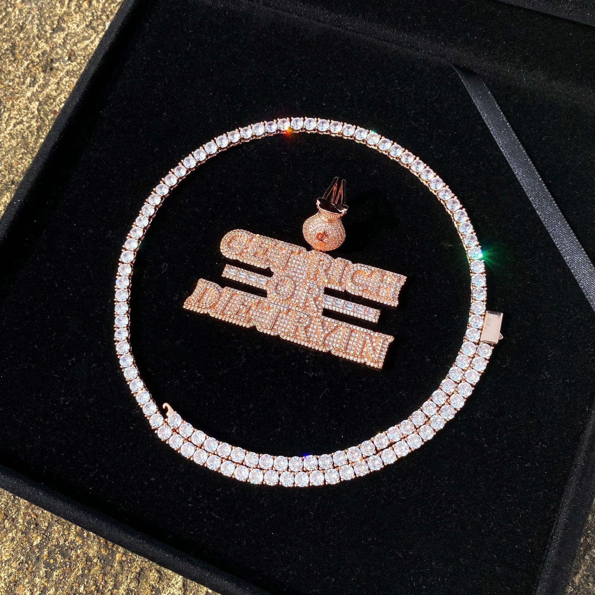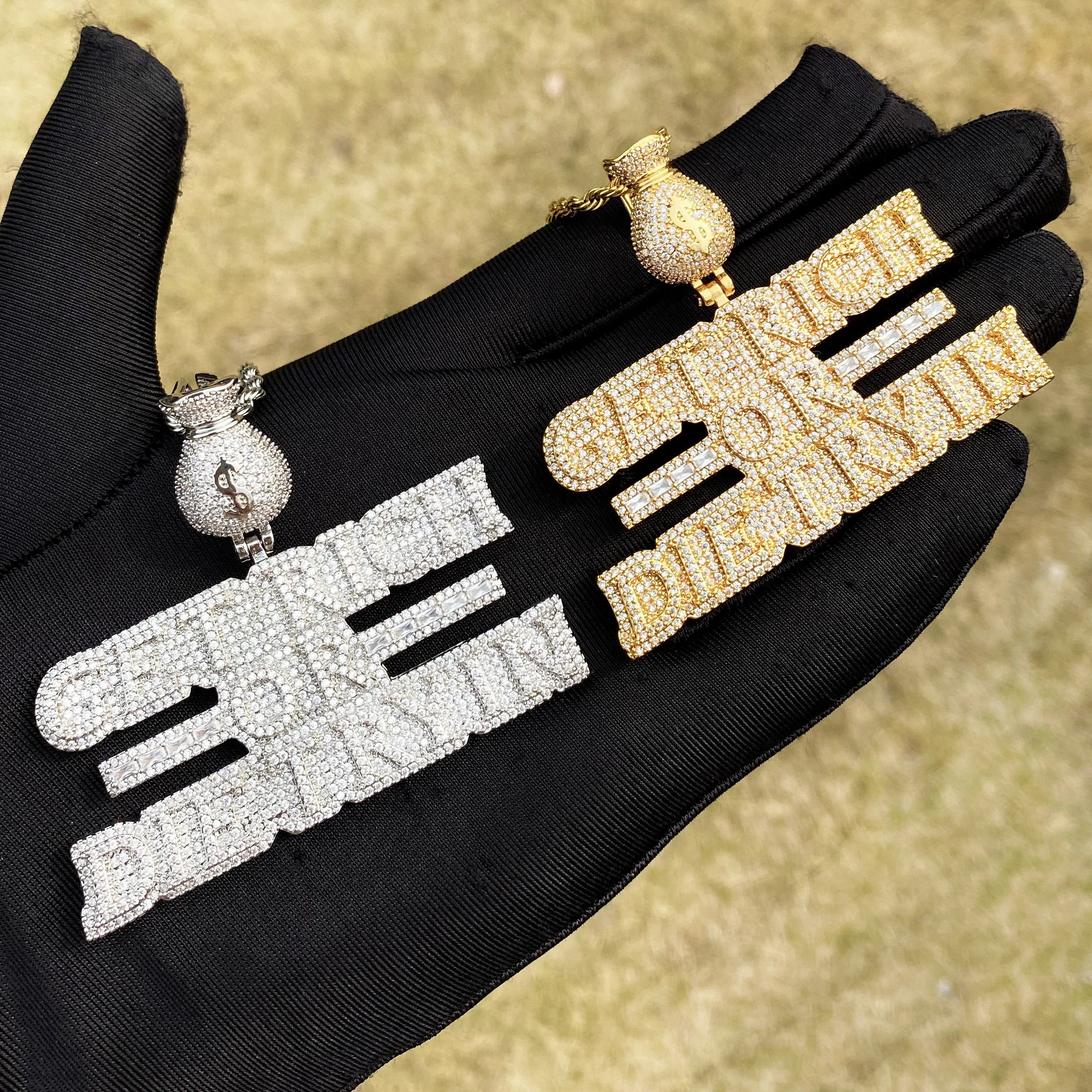 Aokaishen Iced Out Necklace Pendant for Men Real Copper Get Rich Hip Hop Jewelry