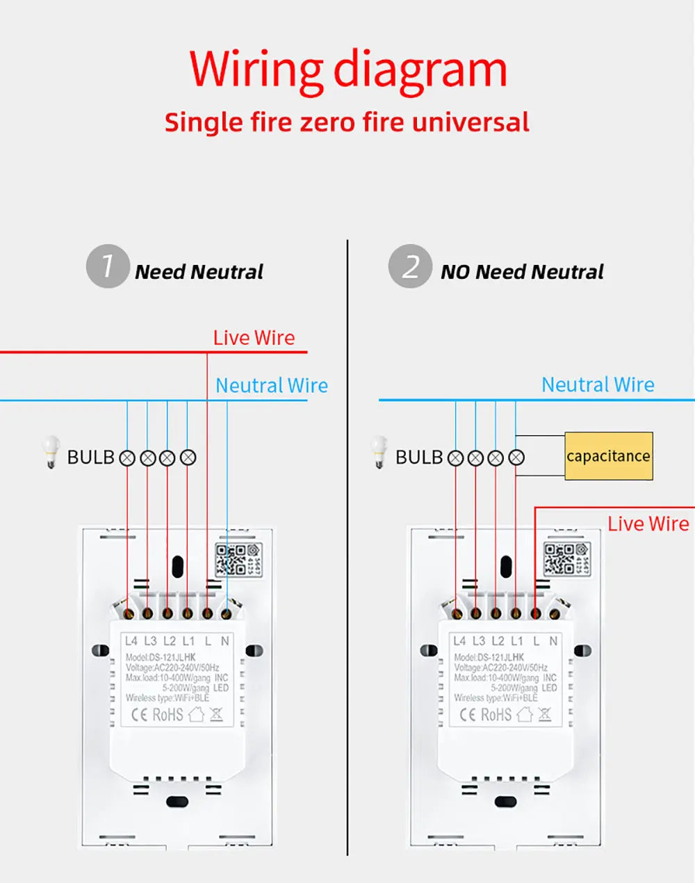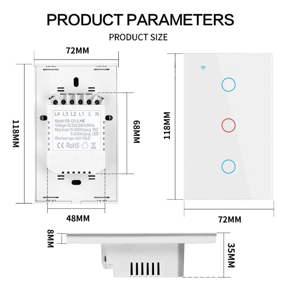Apple Homekit Smart Switch No Neutral EU/US WIFI Touch Sensor Light Switch Smart Google Home Alexa Siri Voice Control 220V 110V