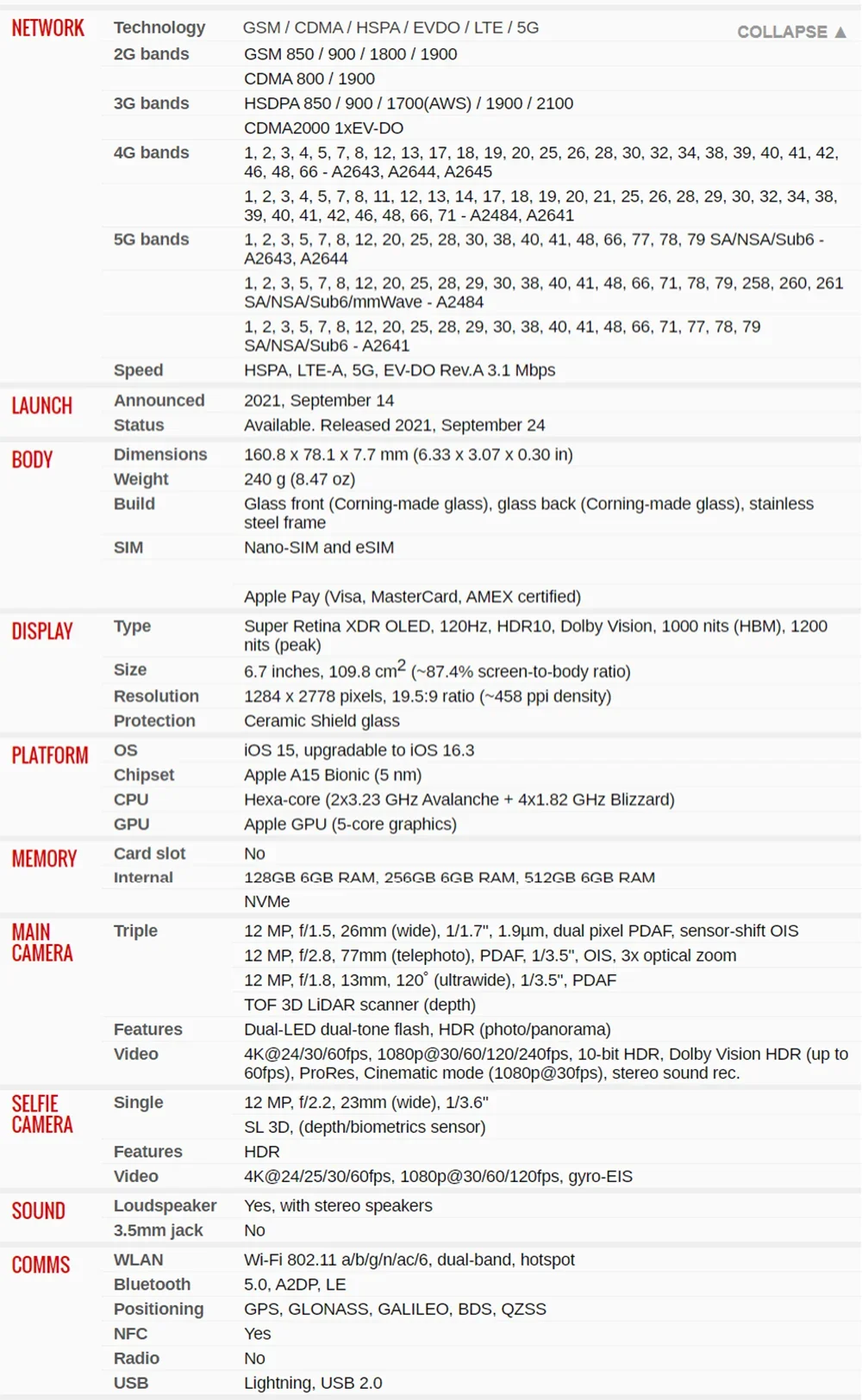 Apple iPhone 13 Pro/13 Pro Max 5G Mobile Phone 6.1"/6.7" 120Hz Super Retina OLED NFC A15 Bionic Hexa-Core Unlocked IOS CellPhone