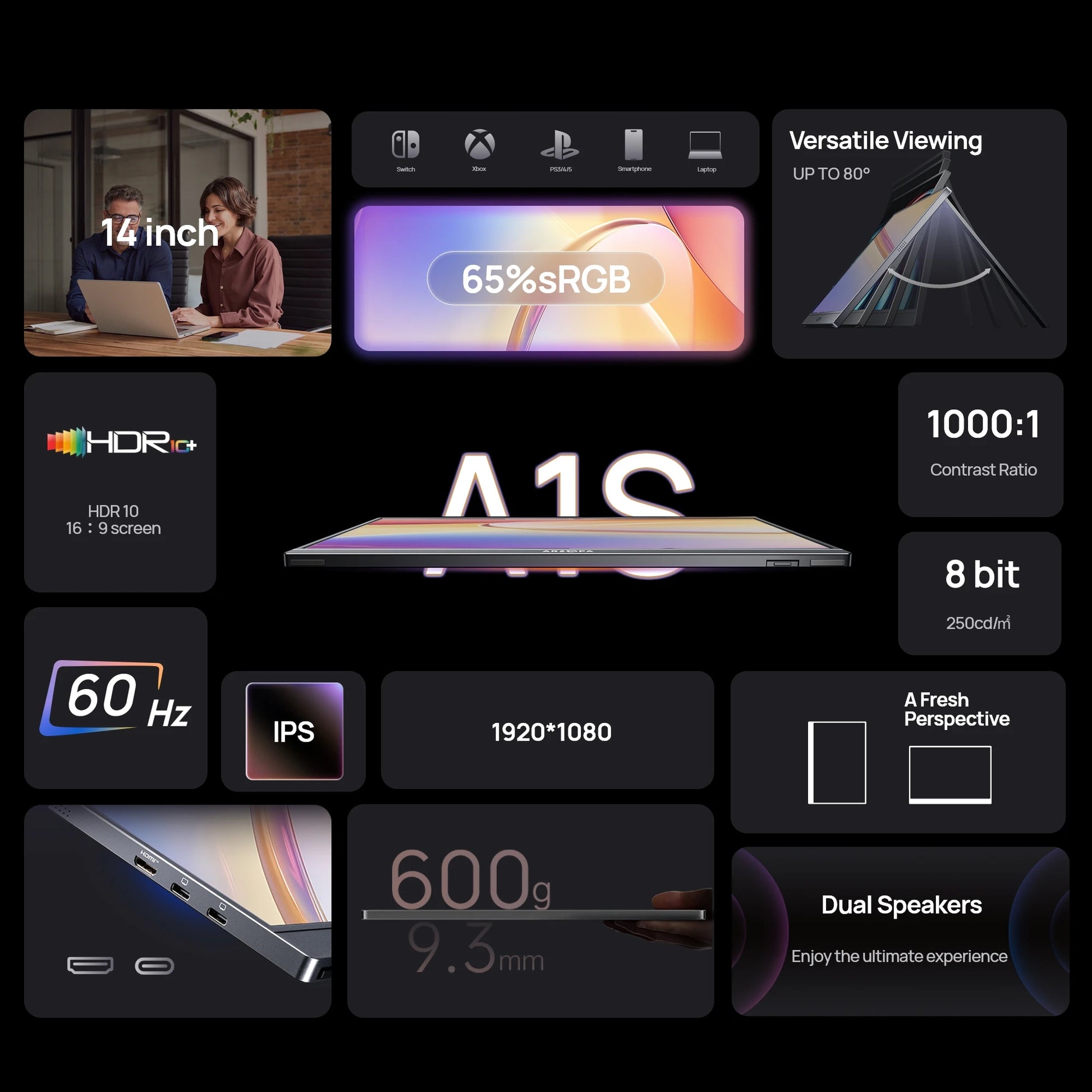ARZOPA 14.0 inch 1080P FHD Portable Monitor IPS Screen with USB C HDMI External Second Display for Mac,Laptop,PC,Switch,PS,Xbox