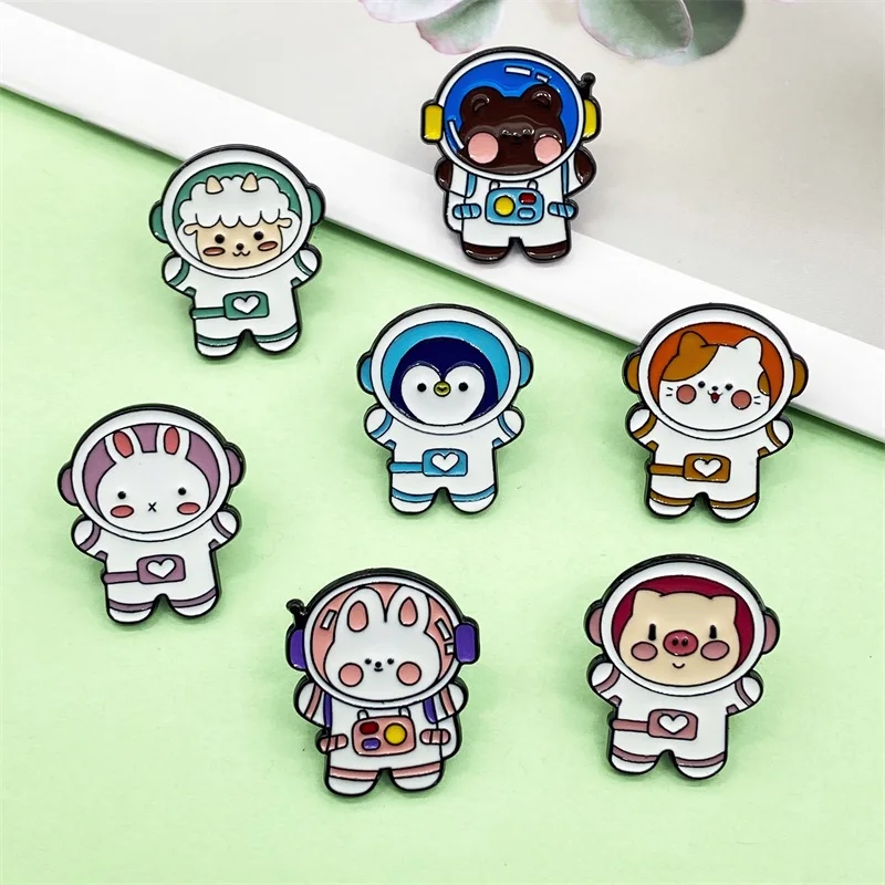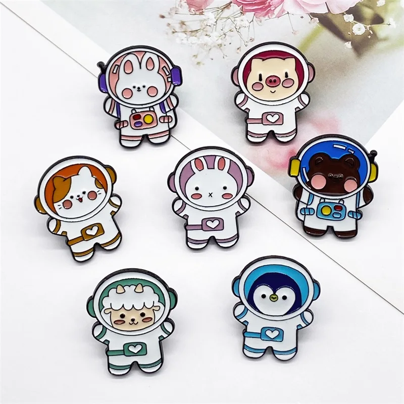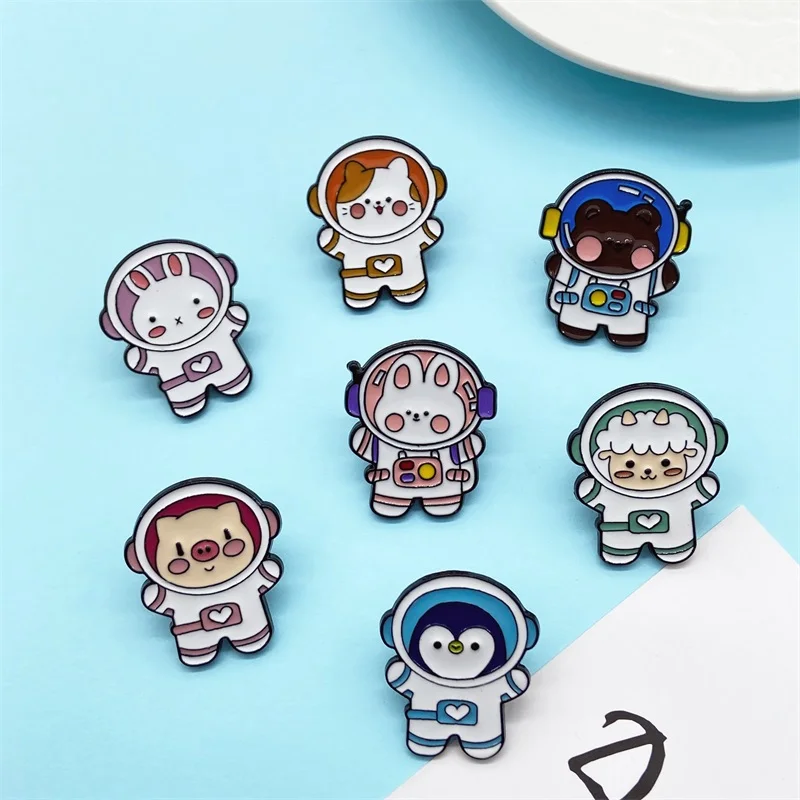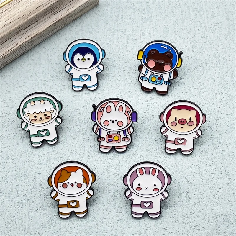 Astronaut Spaceman Cartoon Small Animal Metal Enamel Brooch Retro Fashion Cute Rabbit Sheep Pig Penguin Badge Pin Jewelry Gift