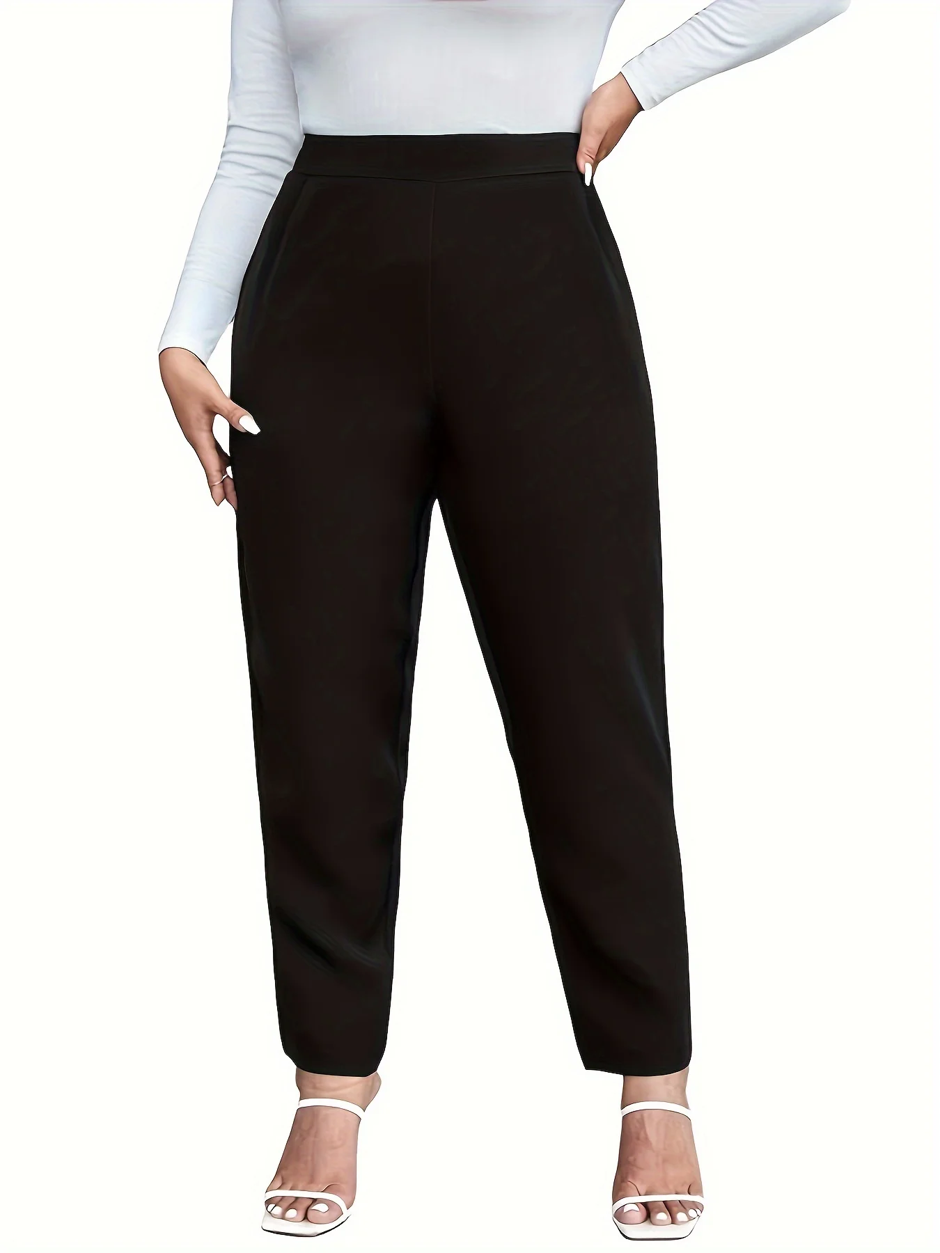 Autumn and winter new women's plus size knitted fabric casual models straight leg design trousers