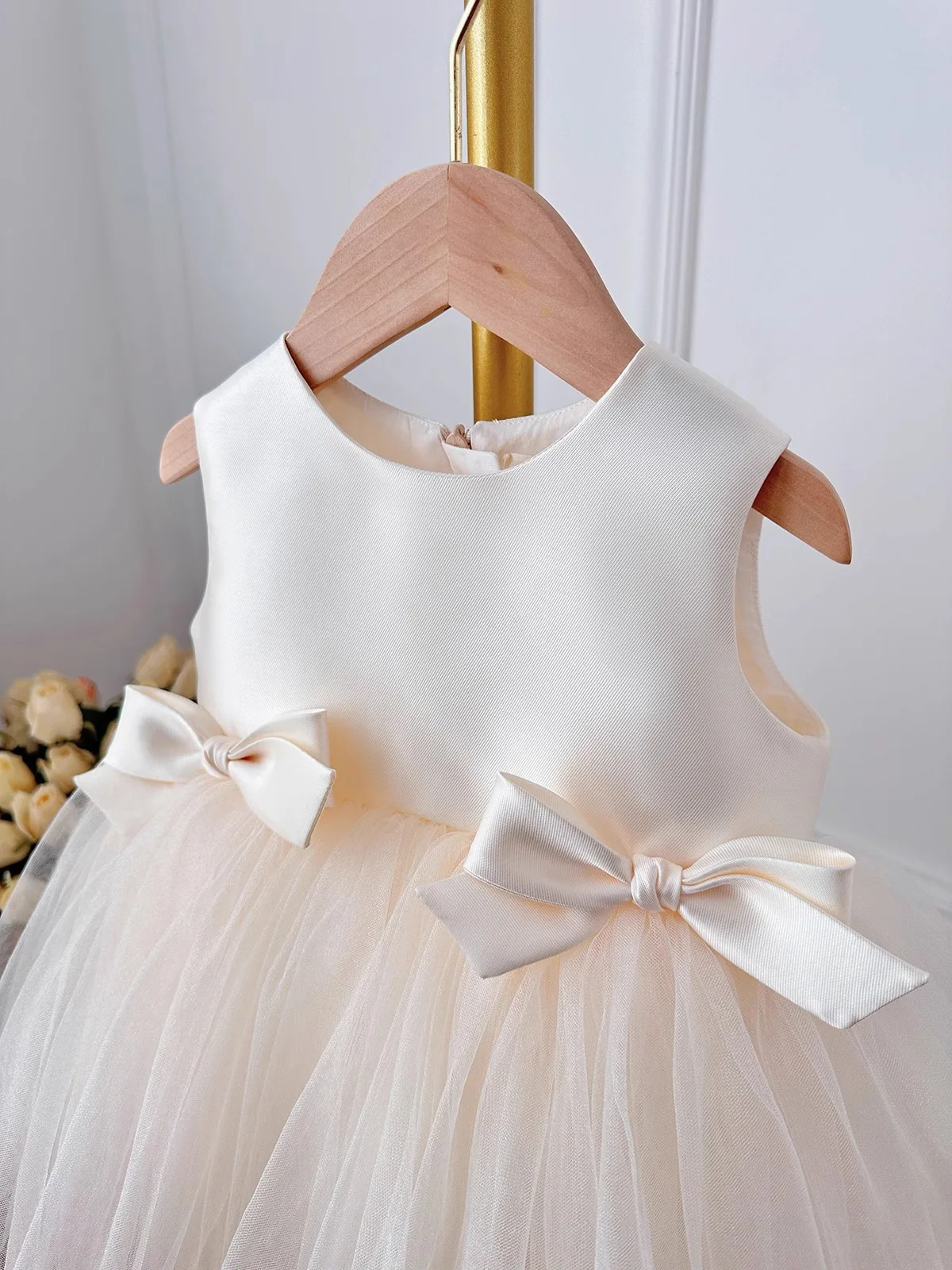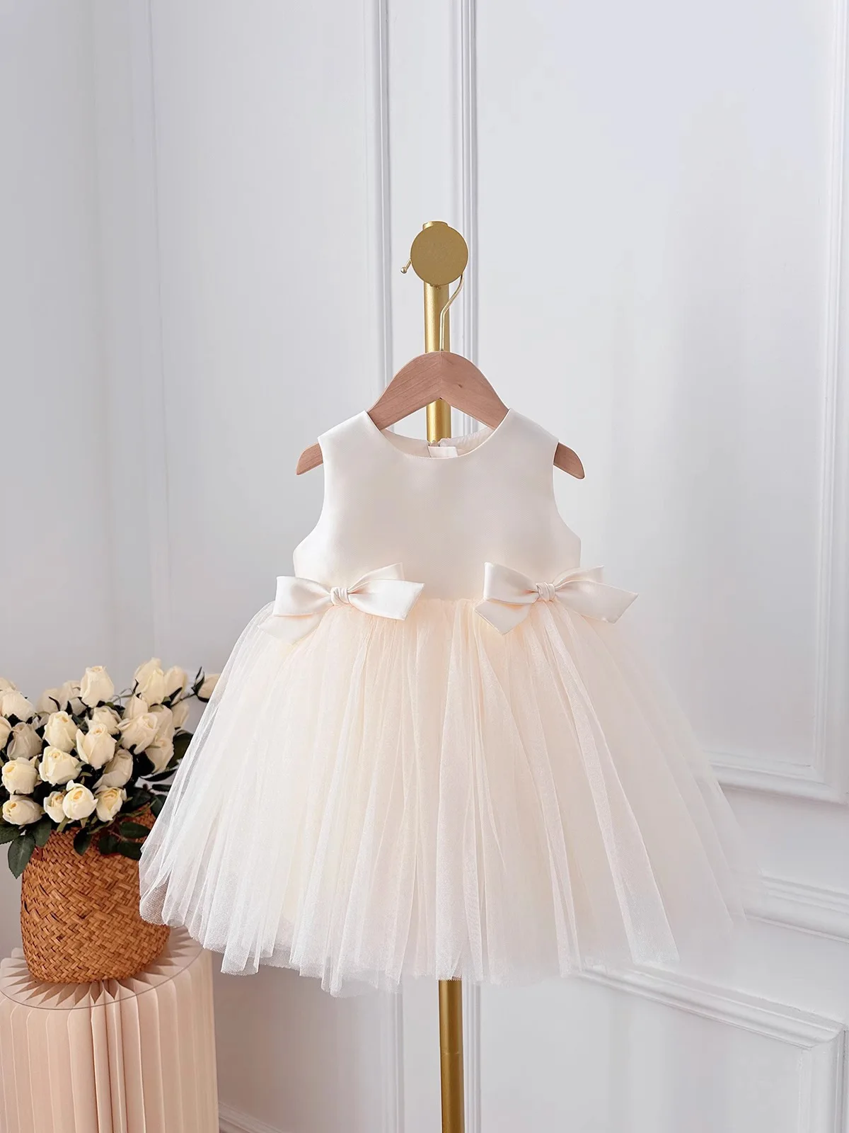 Baby Girl Princess Bow Silk Tutu Dress Sleeveless Infant Toddler Child Elegant Solid Vestido Birthday Party Baby Clothes 1-5Y