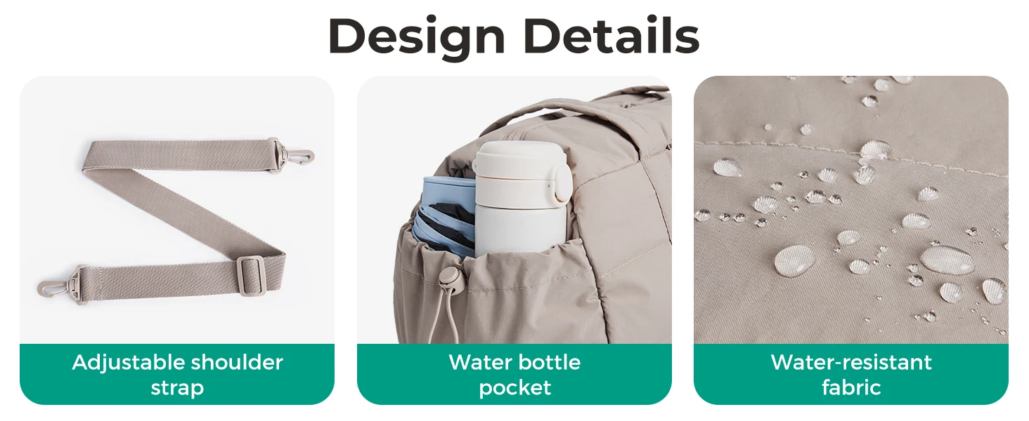 All-Day Comfort: Lightweight and daptable for any adventure. From work to brunch, beach day to weekend travel, the soft and quilted fabric keeps its shape, ready to complement your active lifestyle effortlessly with the detachable shoulder strap