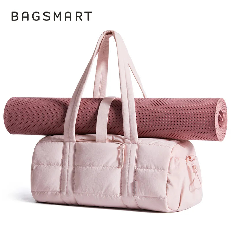 BAGSMART Travel Gym Bag for Women Yoga Mat Duffle Bag with Wet & Dry Pocket Quilted Sports Bag for Weekend Swimming
