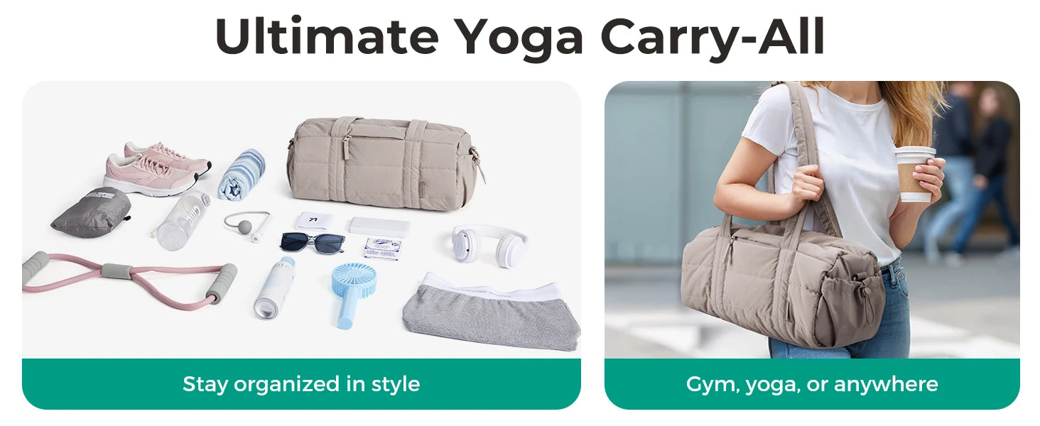 Yoga-Class Ready: No more awkwardly carrying your yoga mat! The sleek roll-top design features a built-in elastic band to securely hold standard mats (up to 1.5” thick). Arrive at class hands-free and stylish, no separate mat carrier needed