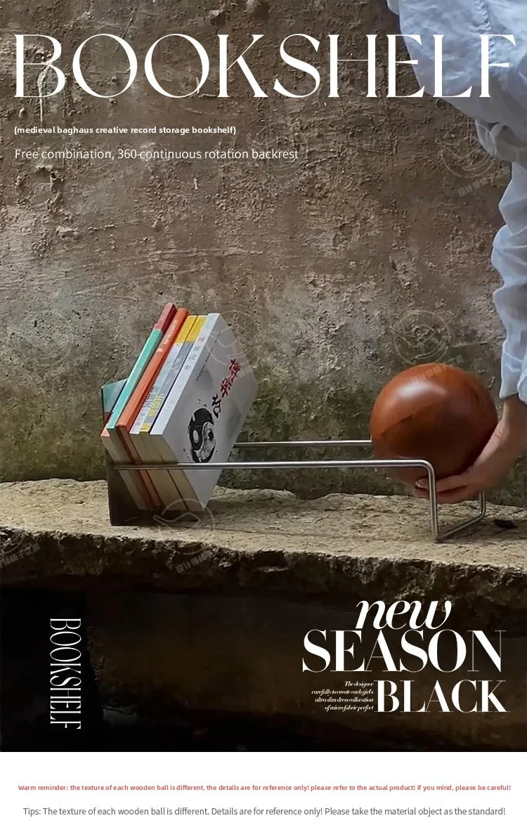 Bauhaus Creative Bookshelf Solid Wood Ball-Bearing Magazine Holder Mid-Century Modern Desk Organizer Artistic Home Display shelf