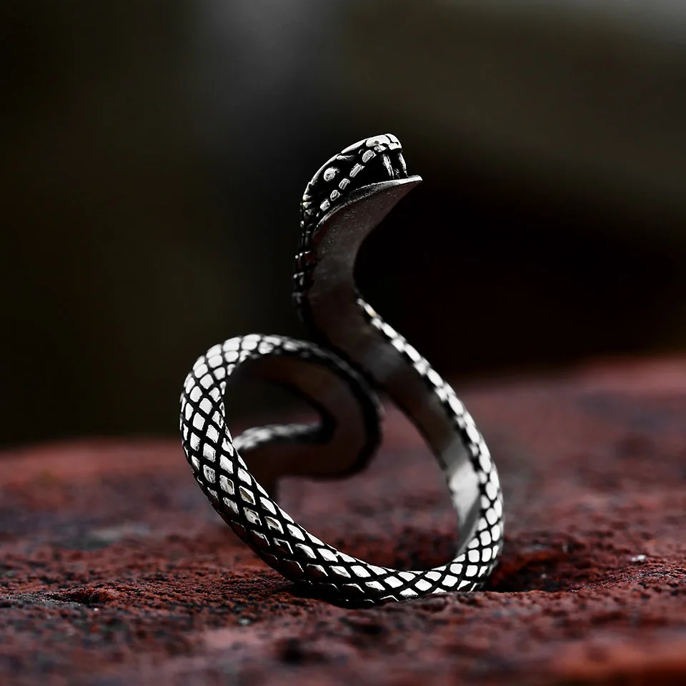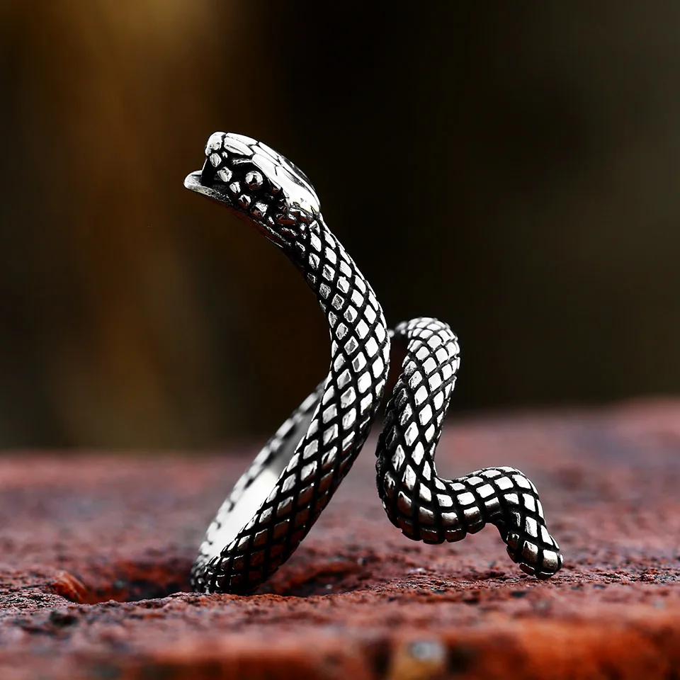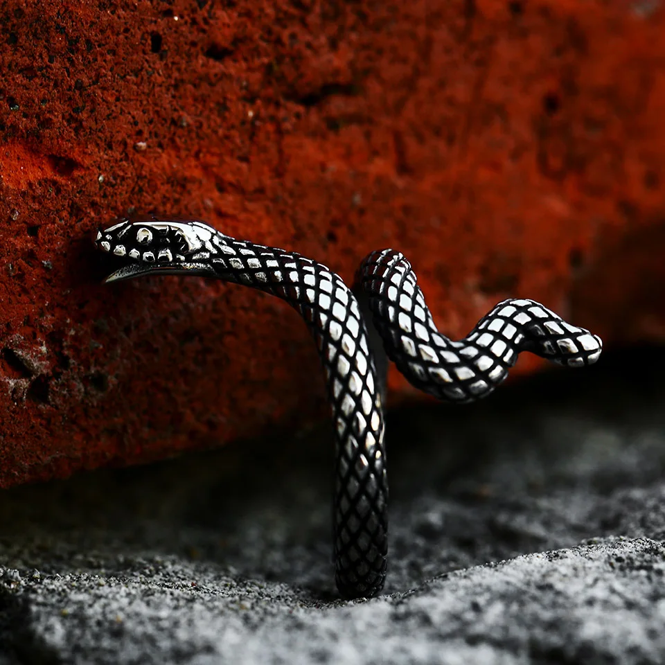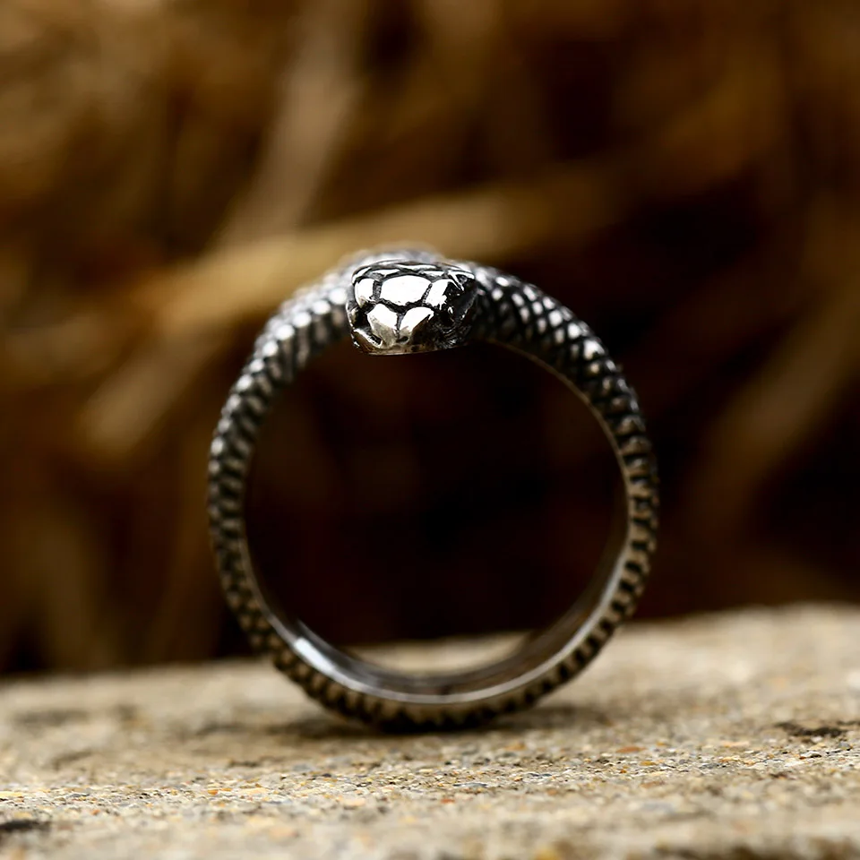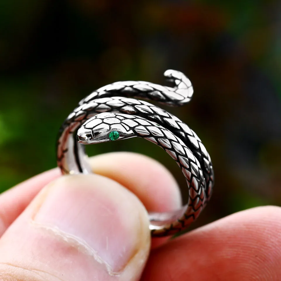 BEIER New Fashion 316L Stainless Steel Rattler Snake Ring Punk Cool Gothic Women Men Unisex Serpent Stainless Steel Jewelry