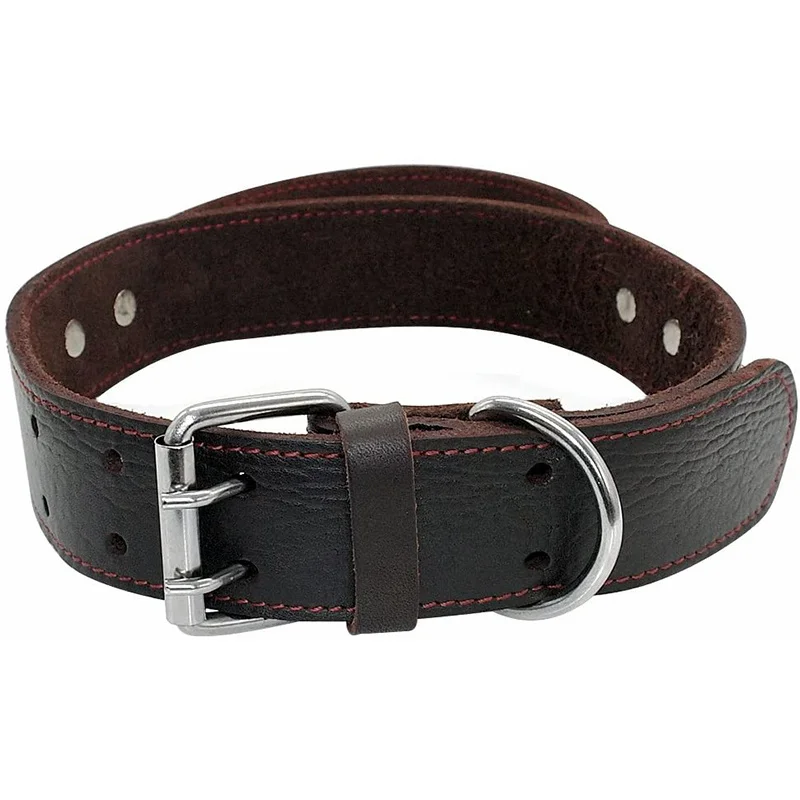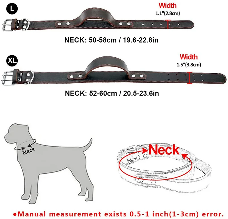 QUALITY MATERIAL & WELL CONSTRUCTED--The collar is made of soft touching genuine leather which is comfortable for both dog neck and people`s hand, the zinc alloy buckles are anti-rust and heavy-duty for daily use