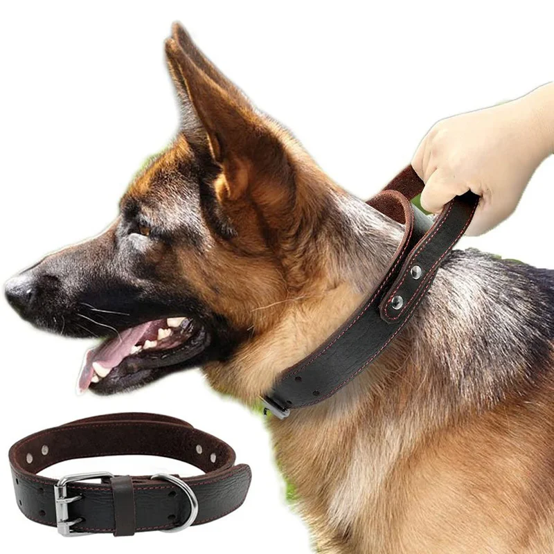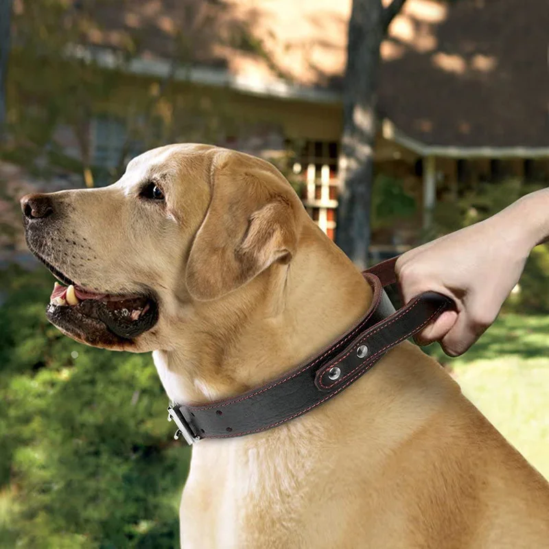 Benepaw Sturdy Genuine Leather Dog Collar Conrol Handle Fashion Durable Heavy Duty Pet Training Collar For Medium Large Dogs