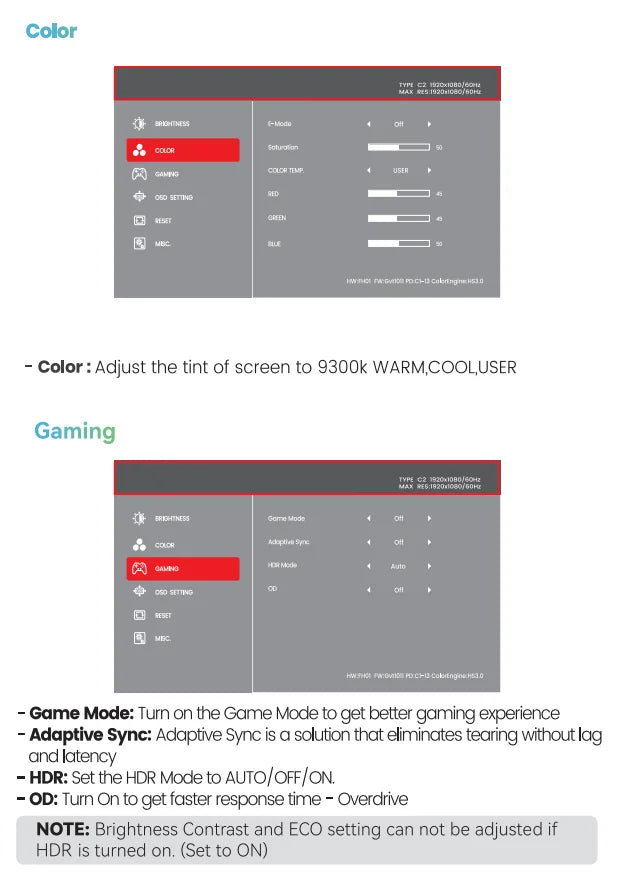 • High-Dynamic Range (HDR400) :Enjoy more vivid and lifelike colors with high-dynamic range (HDR400), which delivers a wider range of colors and deeper blacks.