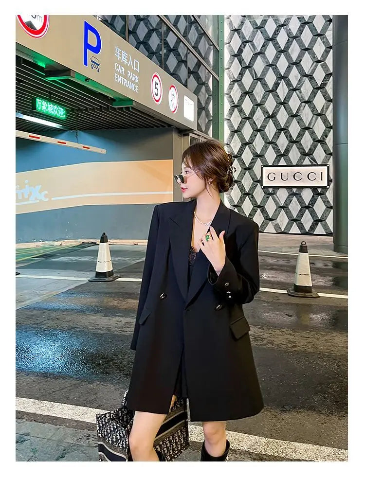 Black Embroidered Blazer Women's Spring Autumn New Korean Version Loose Niche Design Casual Temperament Suit Comfortable 2025