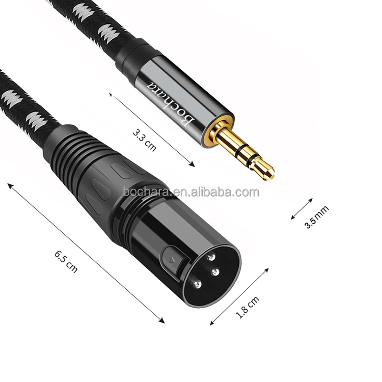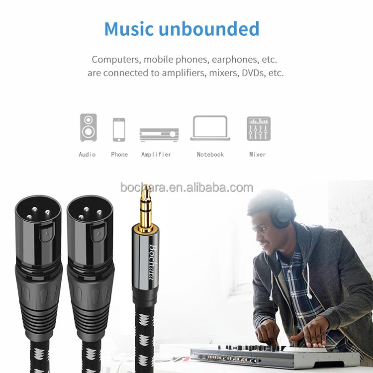 Bochara Braided 3.5mm Stereo Jack Male to Dual XLR Male OFC Aux Audio Cable