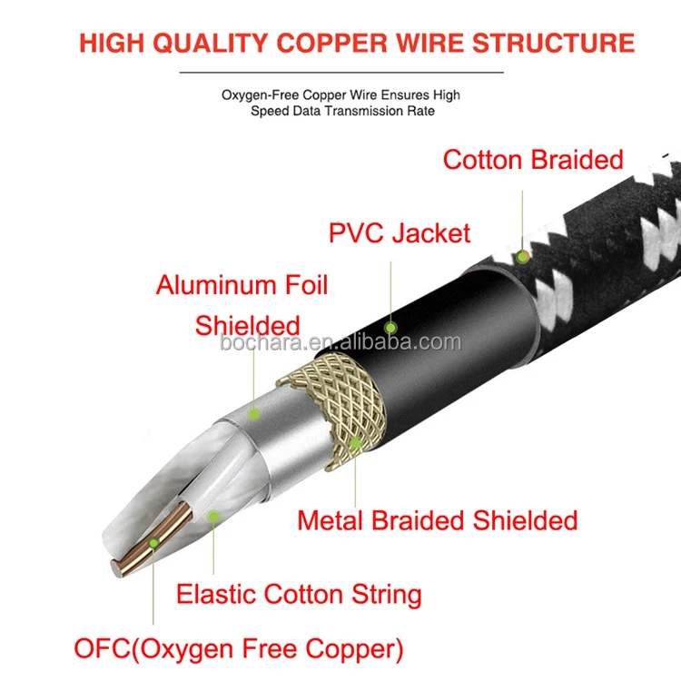 5,Foil+inside Braided Shielded+OFC Copper Core with flexible rubber for better performance and longer life