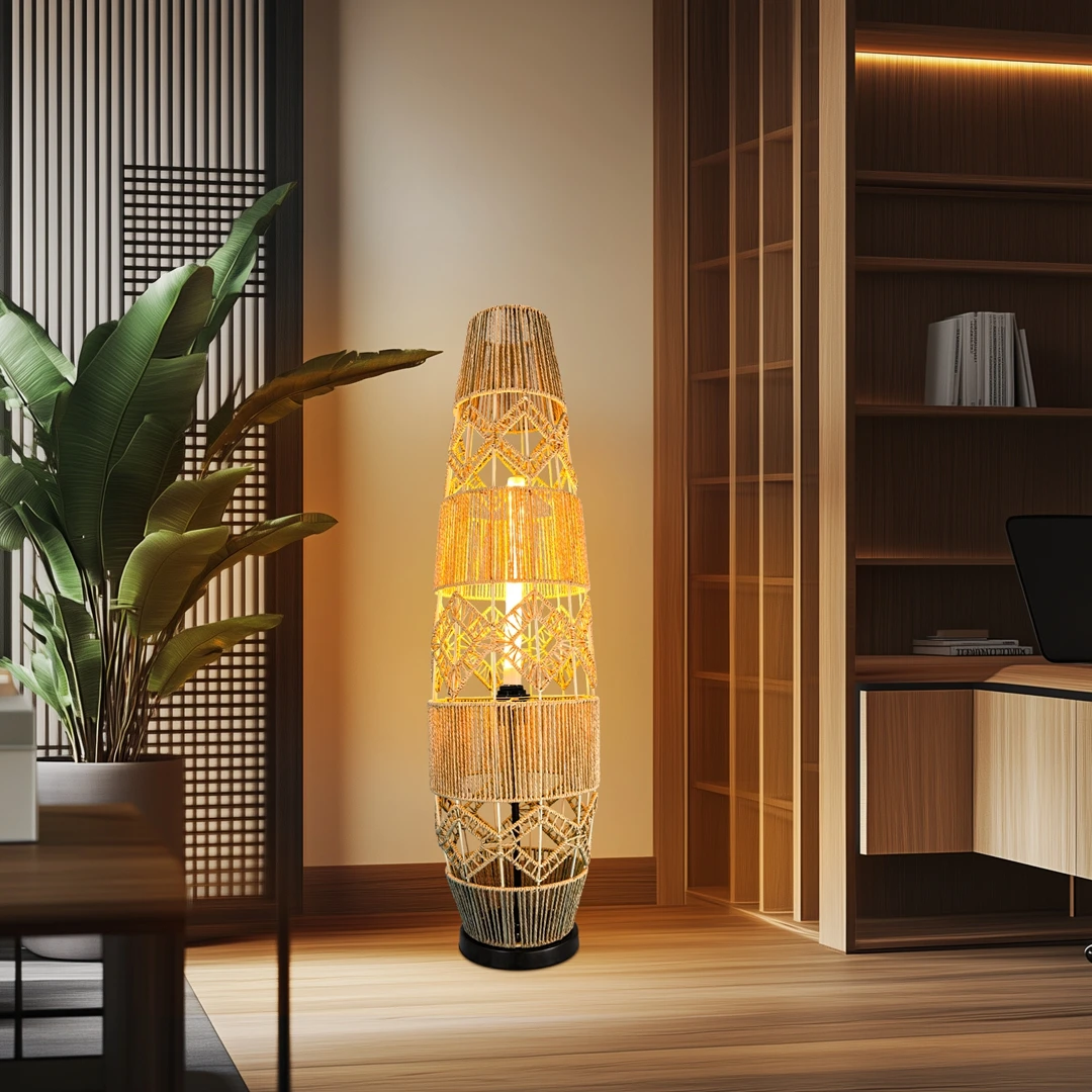 The natural rattan softens glare while casting a calming glow—ideal for reading nooks, dark corners, or bedside relaxation.