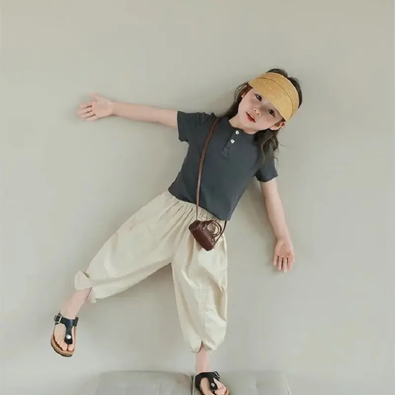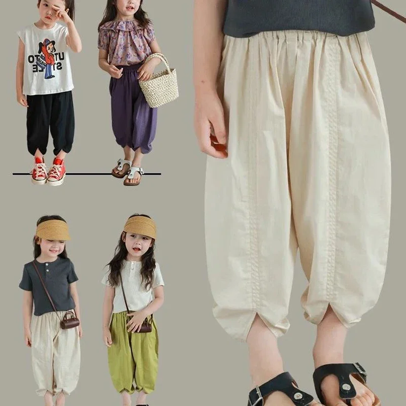 Boys And Girls Pants Japanese Korean Style Casual Loose Lantern Trousers Cropped Pants Summer Fashionable Children's Clothing