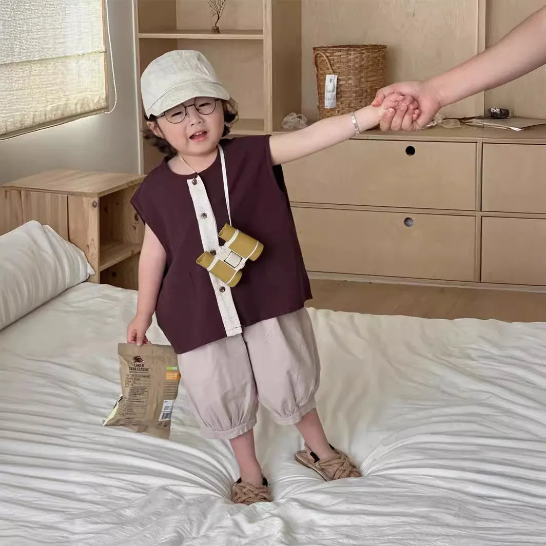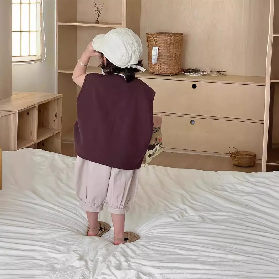 Boys Pants 2025 Summer New Childrens Clothing Korean Fashion Boys Baby Cotton Pure Color Bundle Feet in The Pants Casual Simple