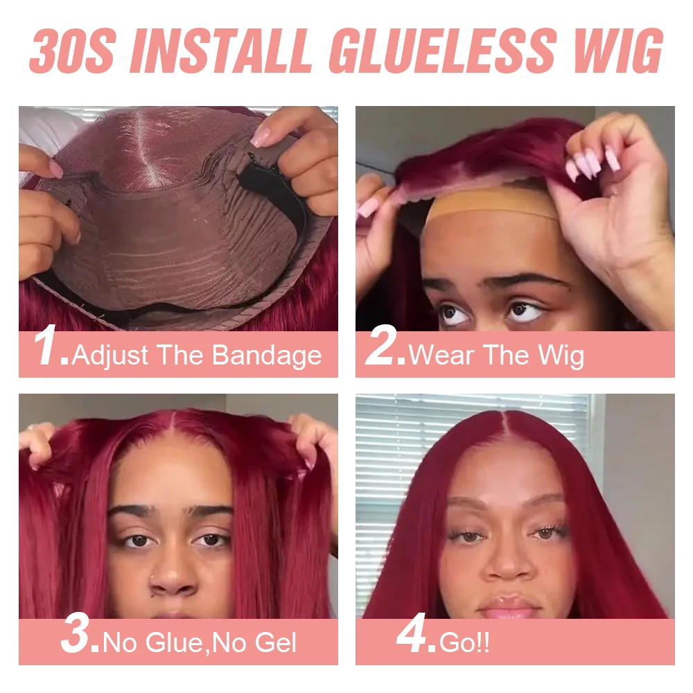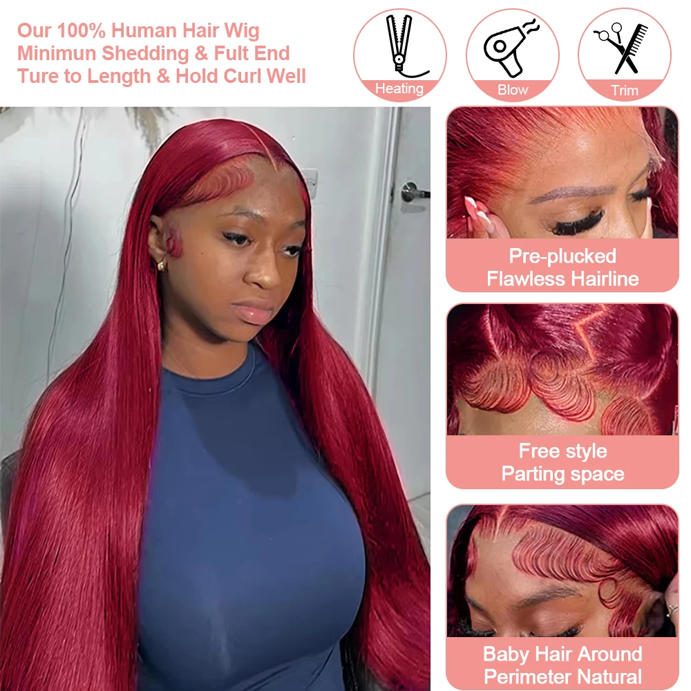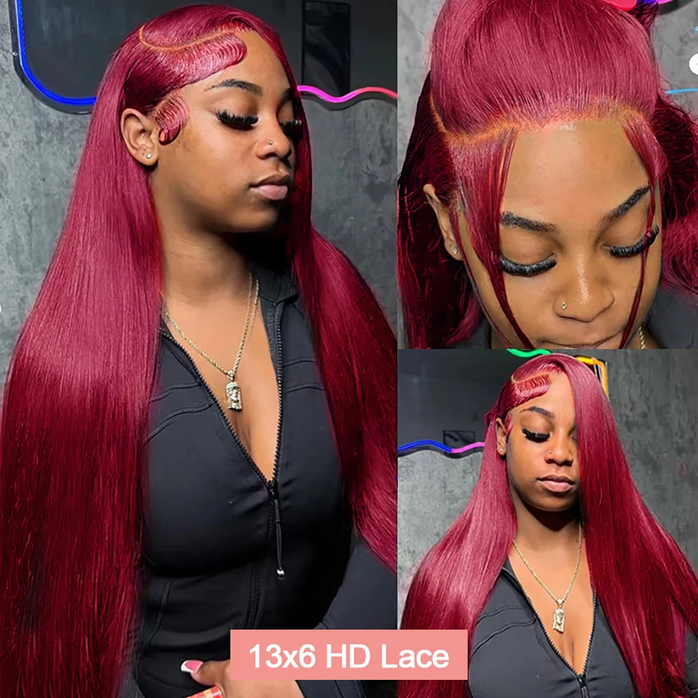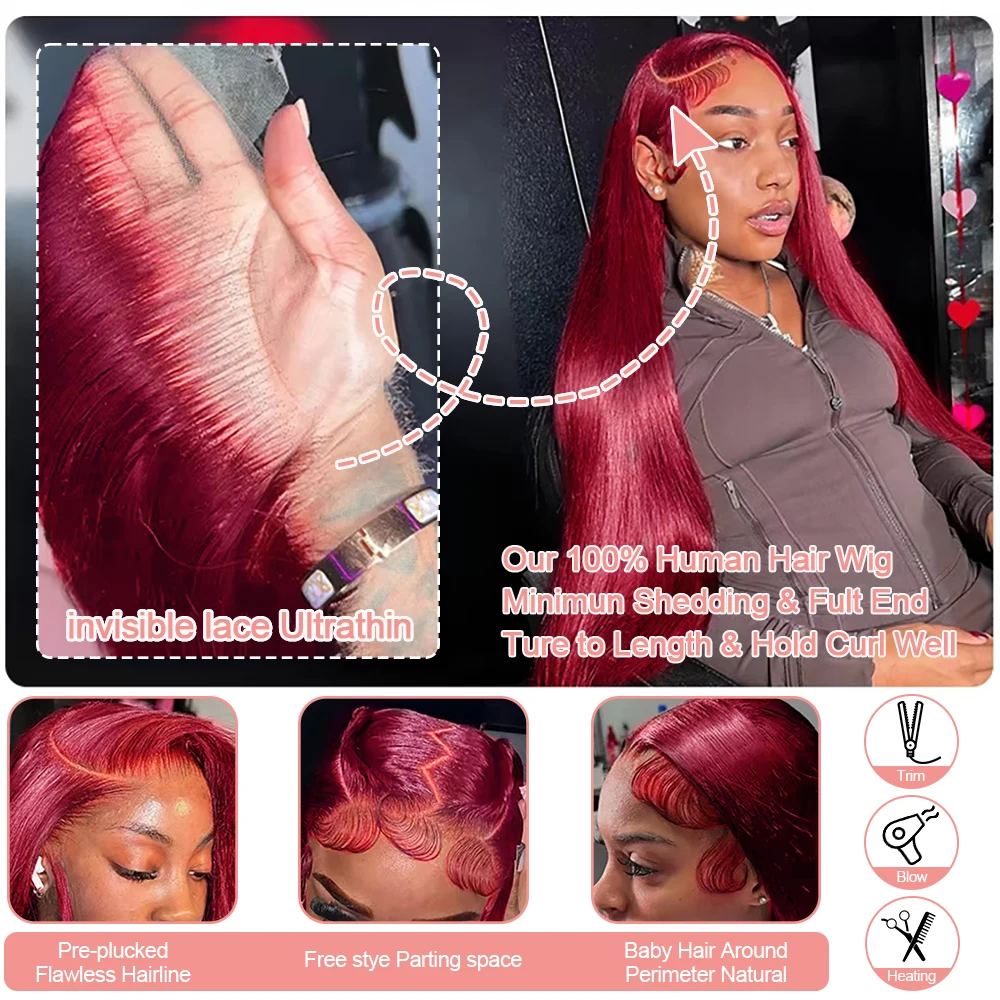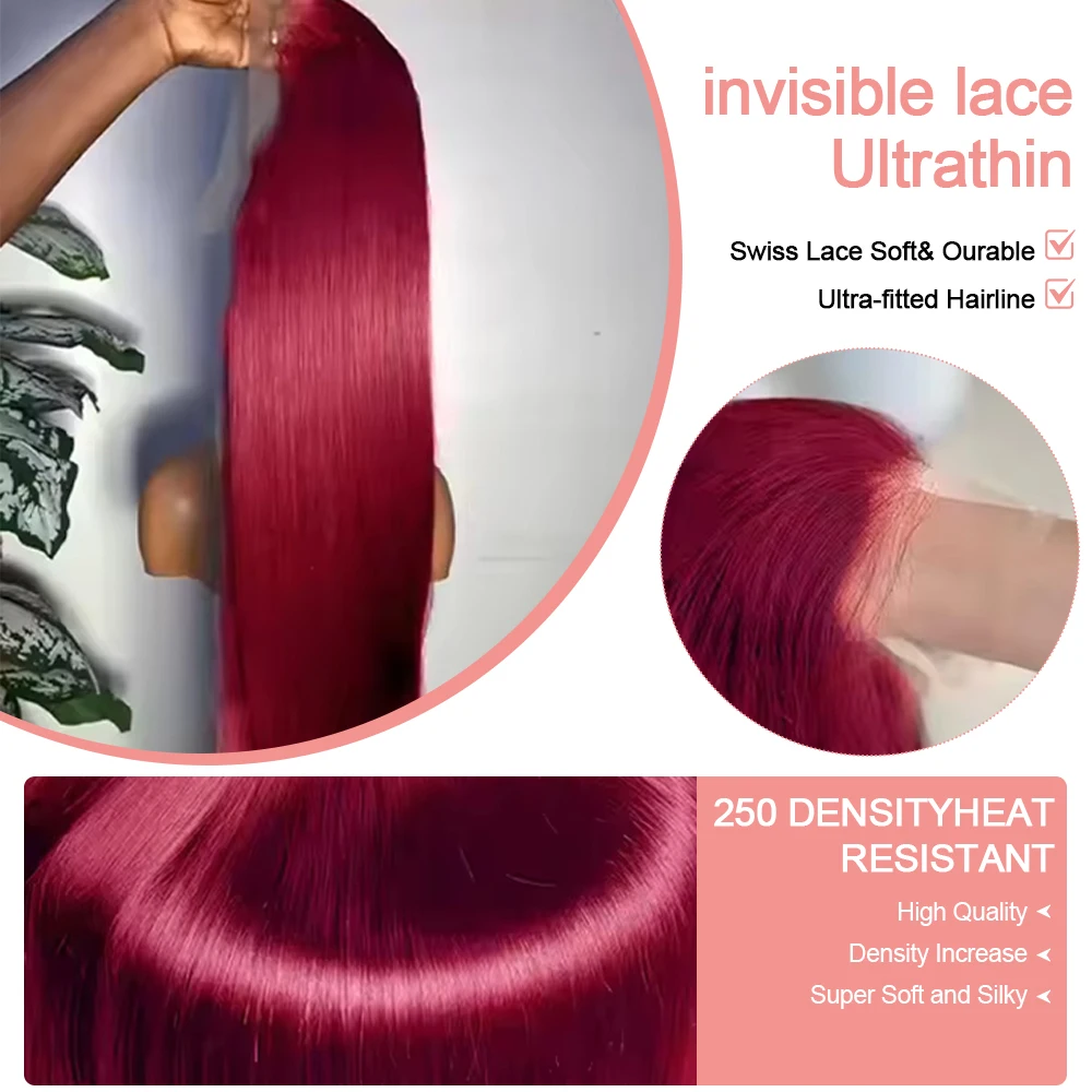 Burgundy Transparent Lace Frontal Human Hair Wig 7x5 Glueless Red 99J Straight Colored 13x4 Lace Front Human Hair Wigs For Women