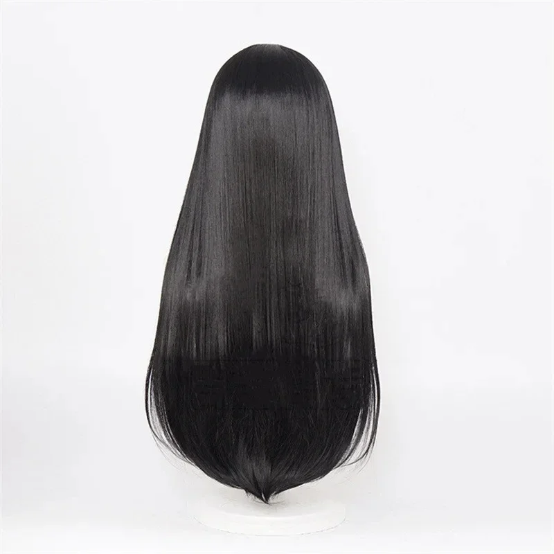 Cartoon Character Cosplay Hair Extensions Synthetic Wigs Natural Breathable Head Cover Black Long Straight Wig Hat for Women