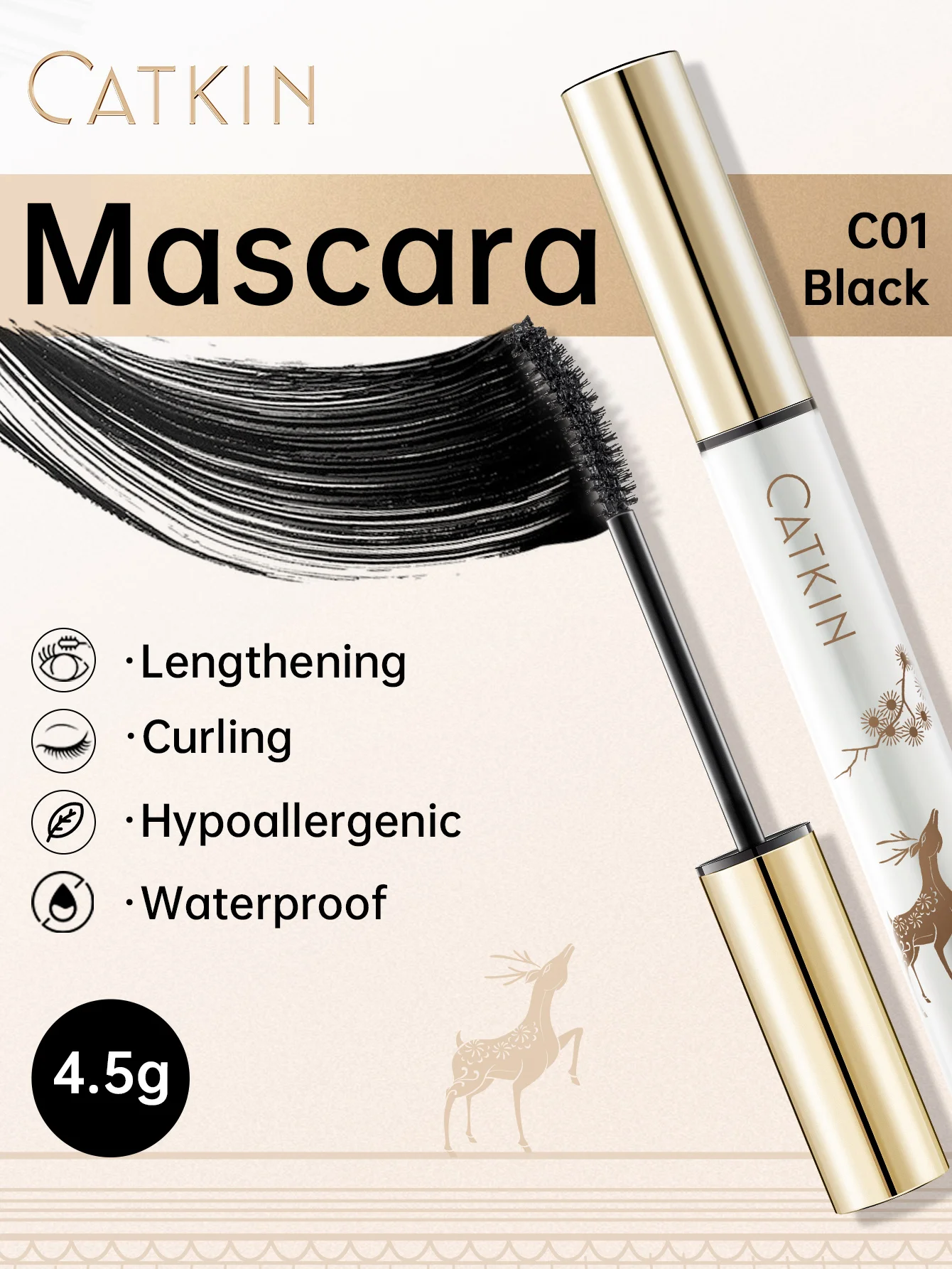 CATKIN Makeup Black Lifting Mascara, Volume and Length Mascara with Waterproof & Long Lasting for sensitive eyes.
