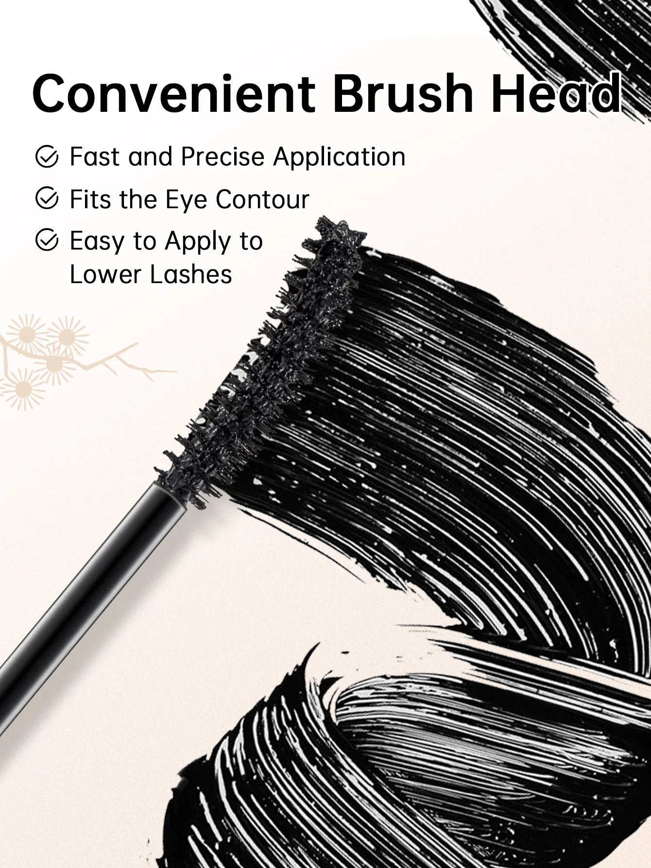 - Double curved mascara brush: Ideal brush made especially to lengthen and volumise lashes giving you the effect of longer eyelashes.