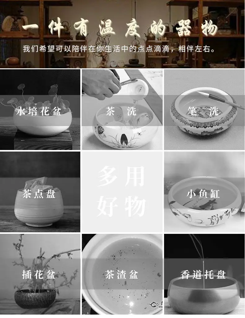 Ceramic Extra Large Purple Sand Zen Tea Wash Pen Set Accessories Hydroponic Bowl Lotus Pot Copper Money Grass Special Flower