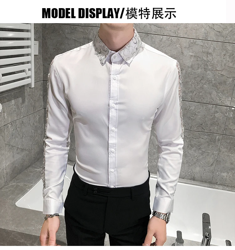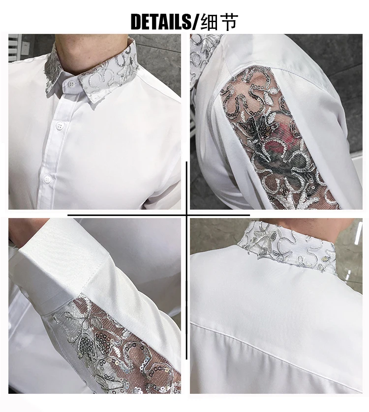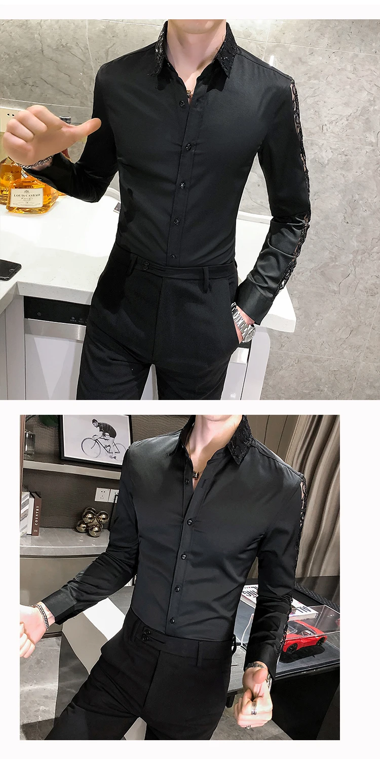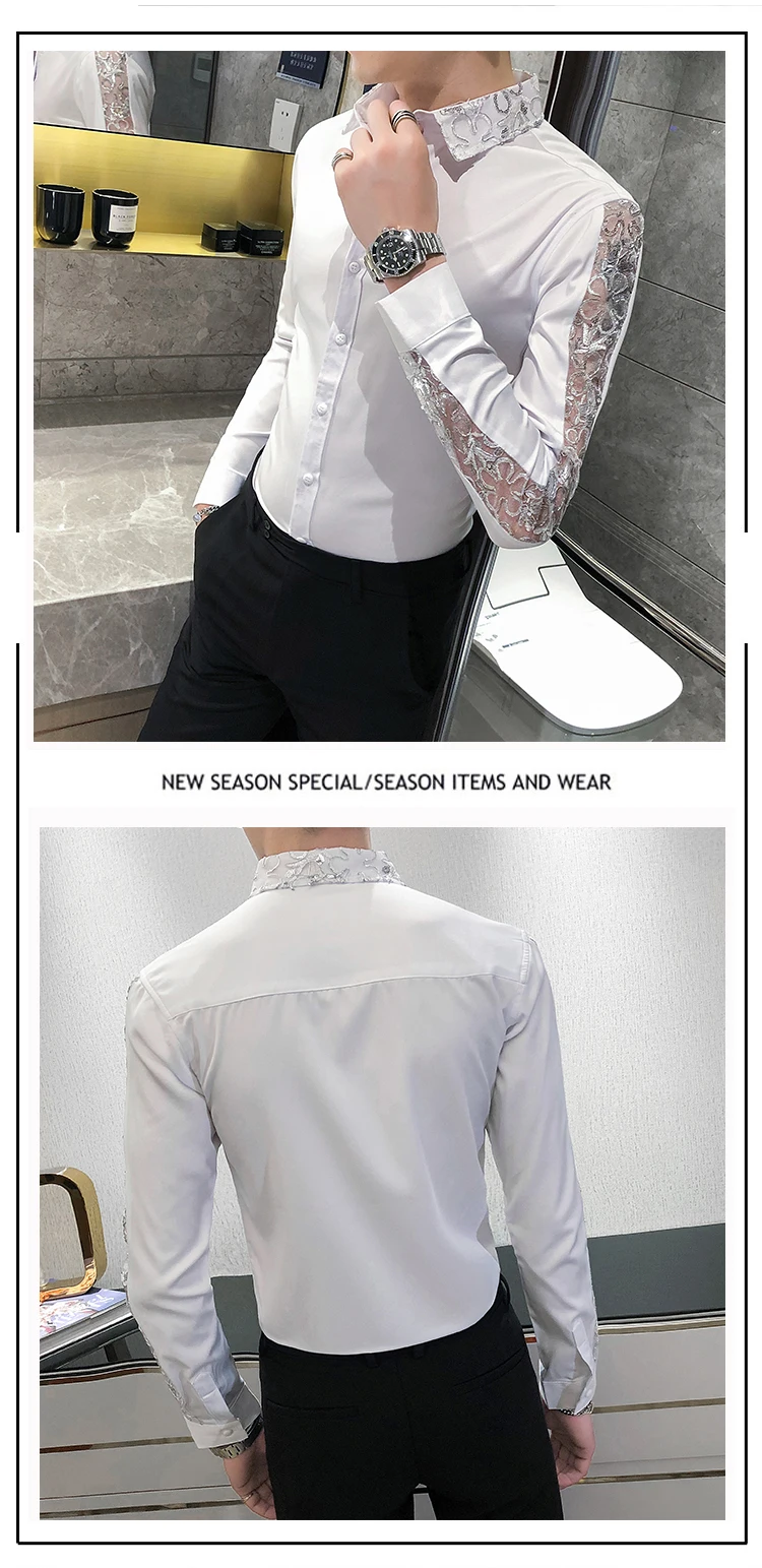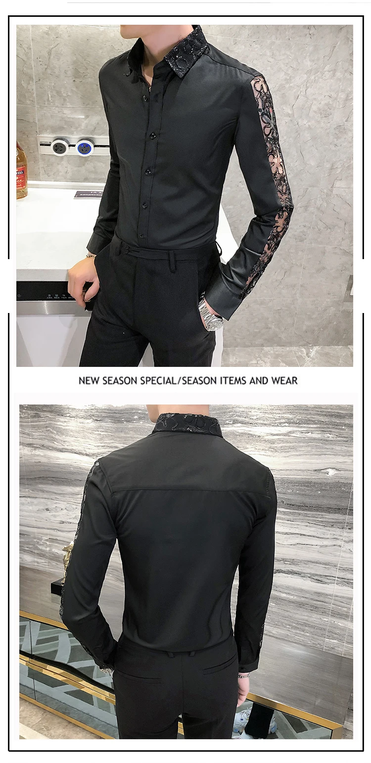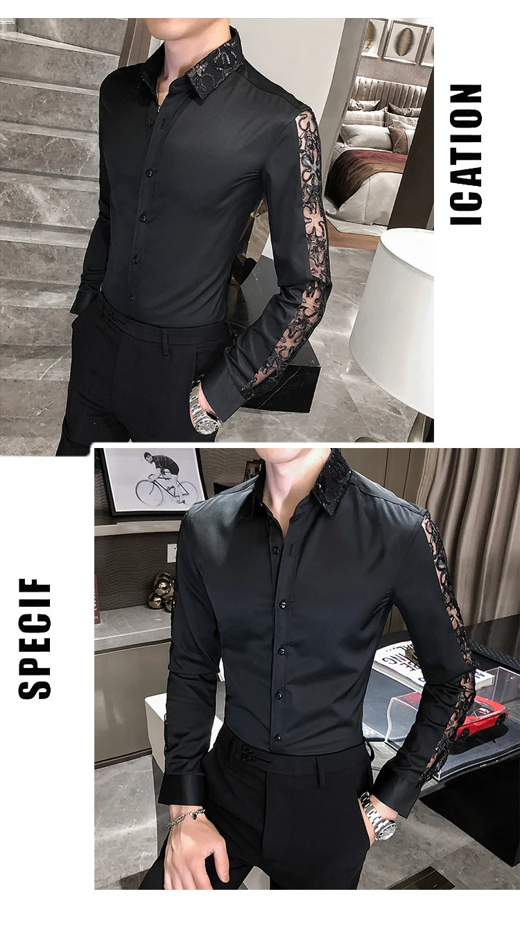 Chemise Homme Fashion Sexy Lace Long Sleeve Elegant Shirts For Men Clothing Slim Fit Casual Men's Social Shirt Tuxedo Big Size