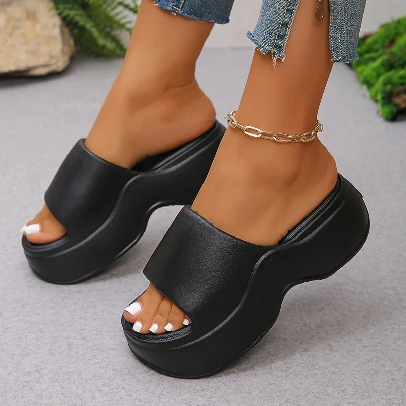 Chunky Platform Slippers for Women Summer 2025 Comfortable Wedge Heels Sandals Woman Solid Non Slip Eva Thick Sole Slides Shoes