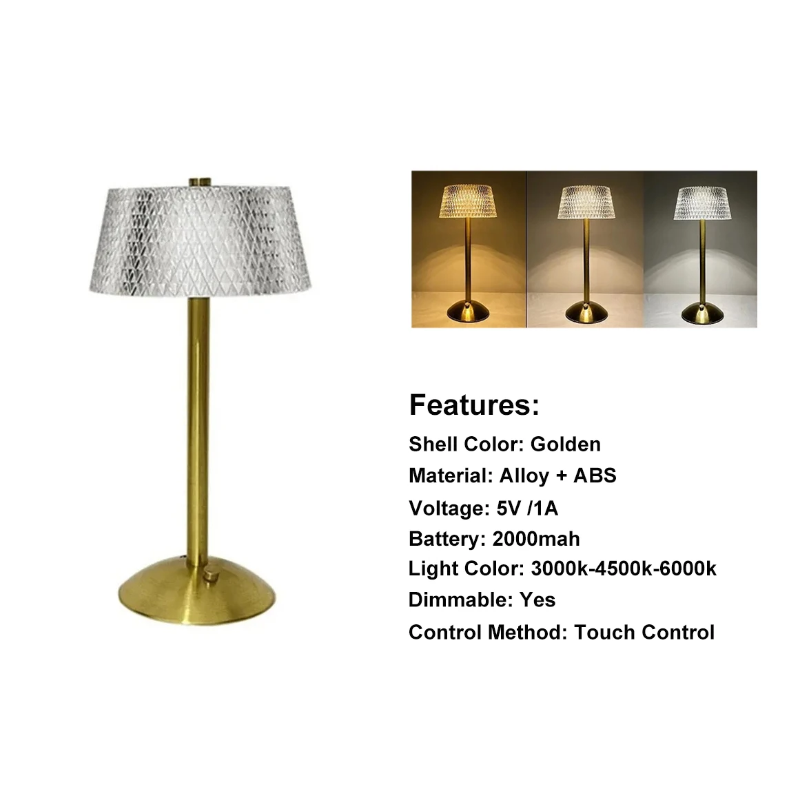 Classic LED Cordless Table Lamp USB Rechargeable Night Light Coffe Bar Touch Dimming Desk Lamp Bedroom Decor Crystal Table Lamps
