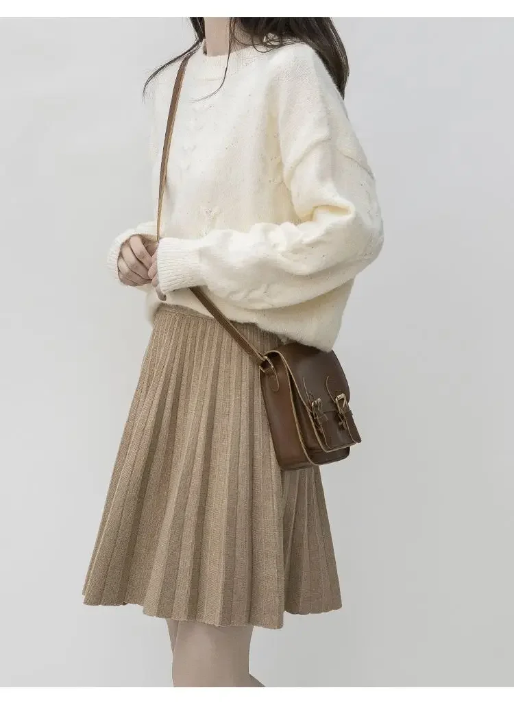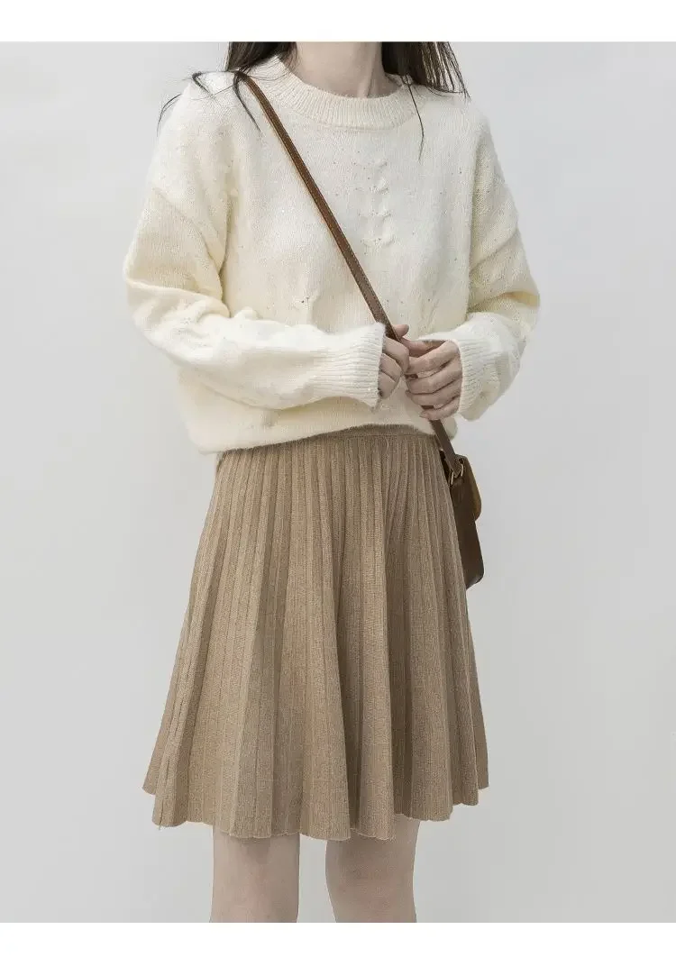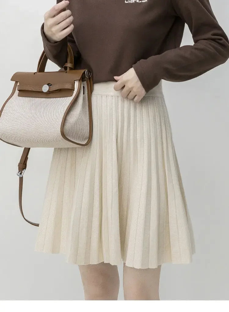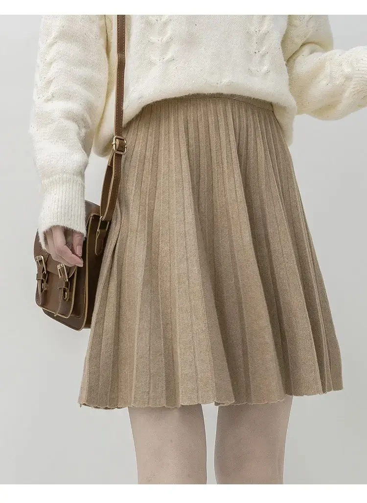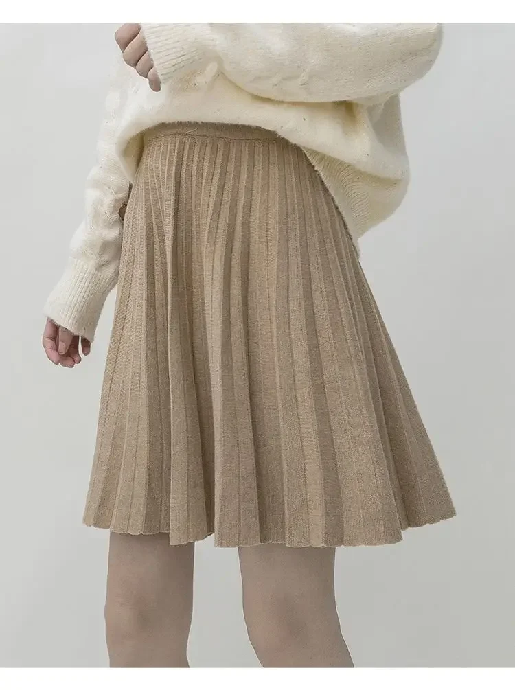 Clothes for Women Autumn Winter Korean Fashion Sexy Sweet Chic Pleated Skirts Elegant High Waist Solid Slim A-line Knitted Skirt
