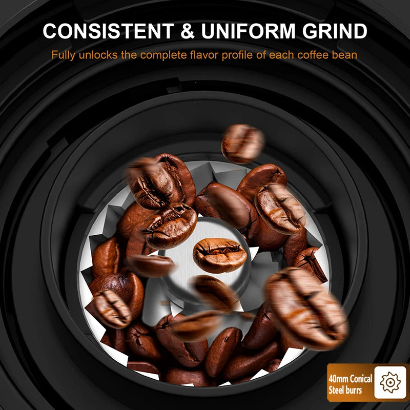 Coffee Grinder Automatic Electric Conical Grinder with Powder Blower 25 Precise Grindings for Espresso French Press 2-12 Cups