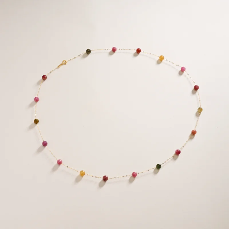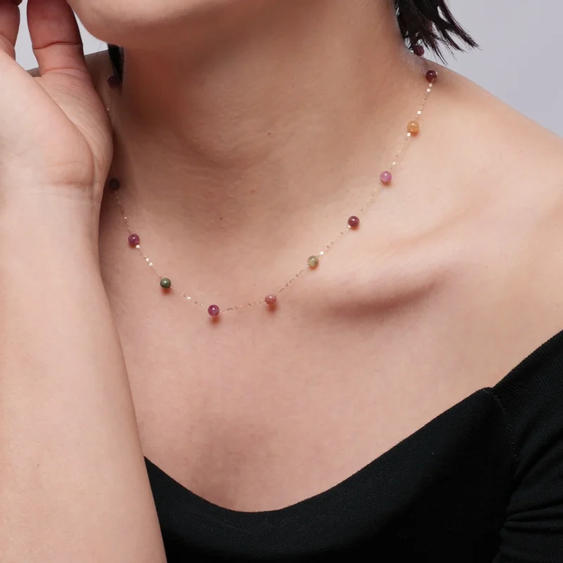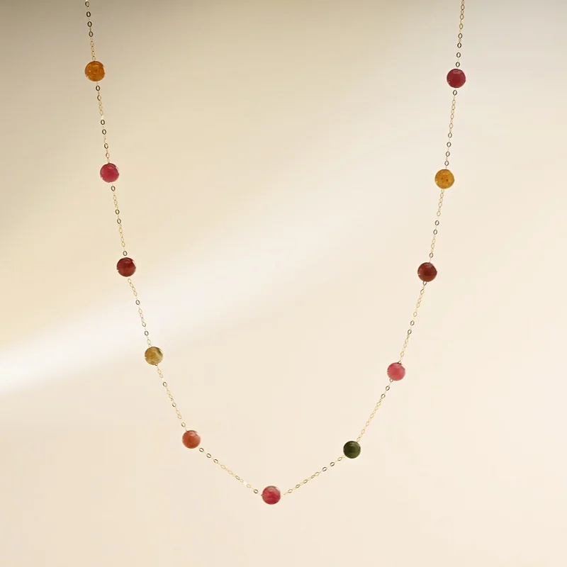 Colorful 18K yellow gold necklace pendant au750 Fine Jewelry Natural tourmaline fashion wedding party gift for girl X1021