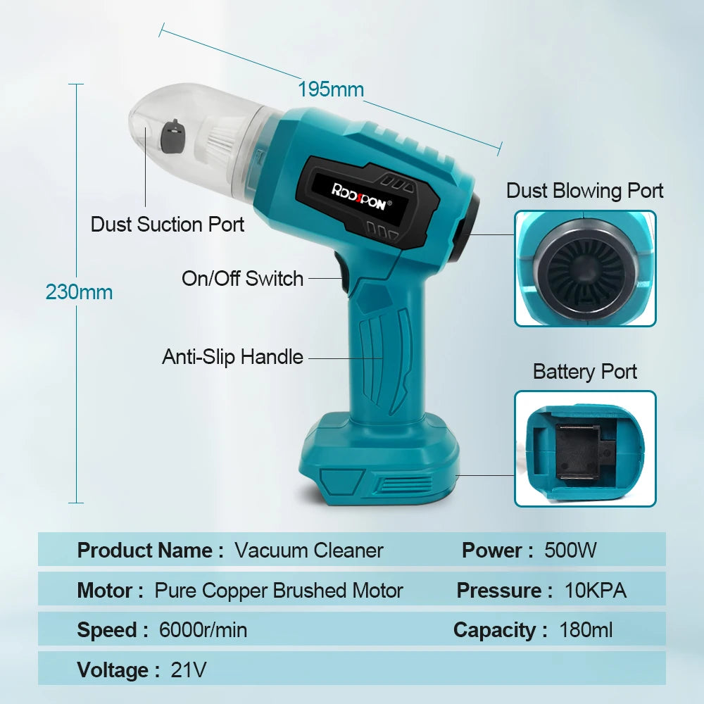 Cordless Car Vacuum Cleaner Rechargeable Auto Vacuum Cleaner Handheld Home Carpet Pets Hair Blowing Tools for Makita 18V Battery