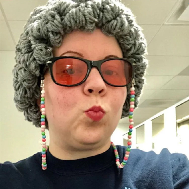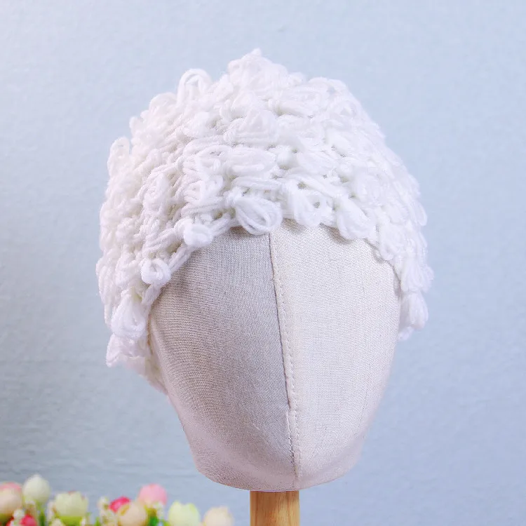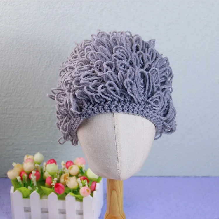 Cosplay Kids Boy Girl Hat Cute Old Lady Woman Curly Hair Wig Cap Skullies Beanies Winter Warm Knit Children Baby Hats and Caps