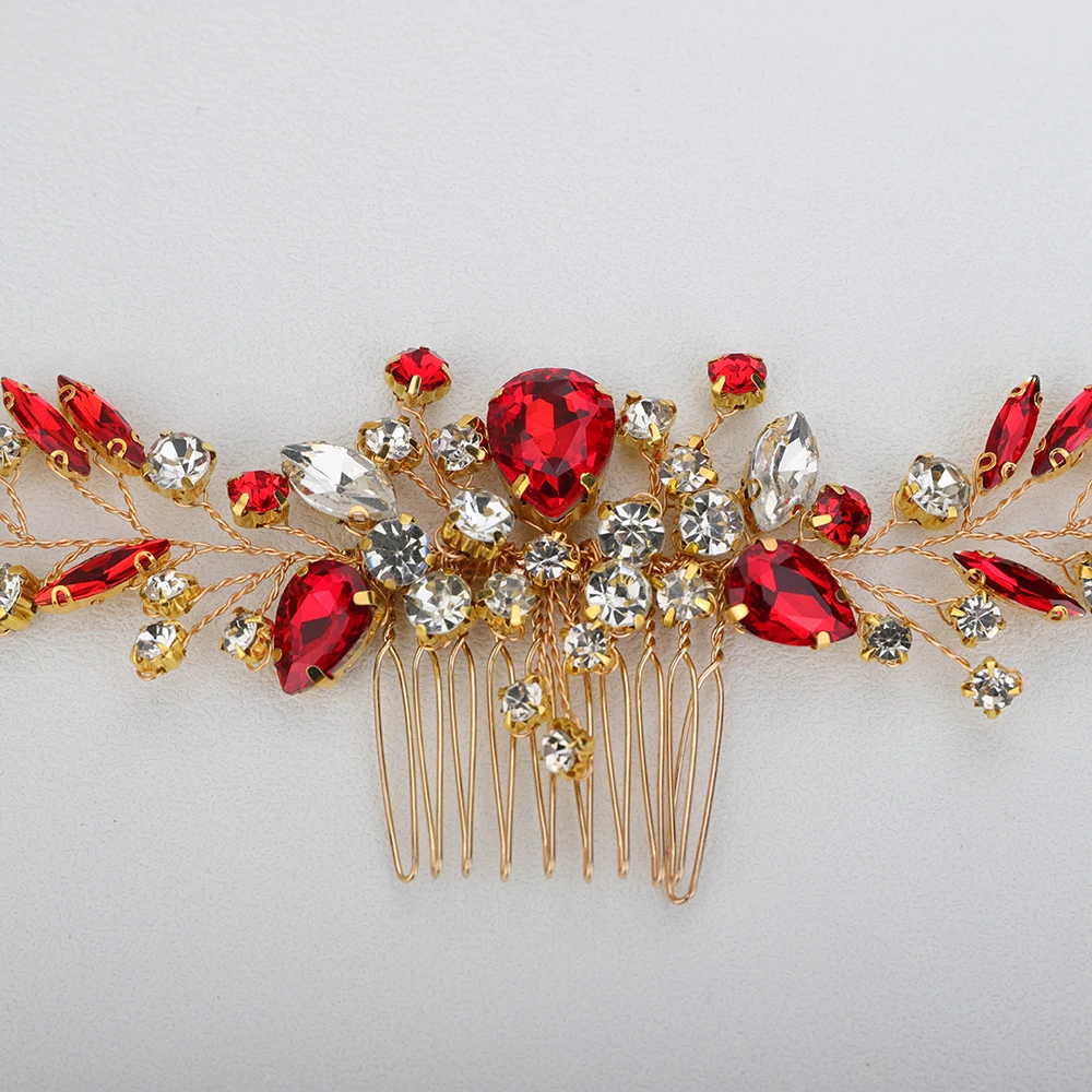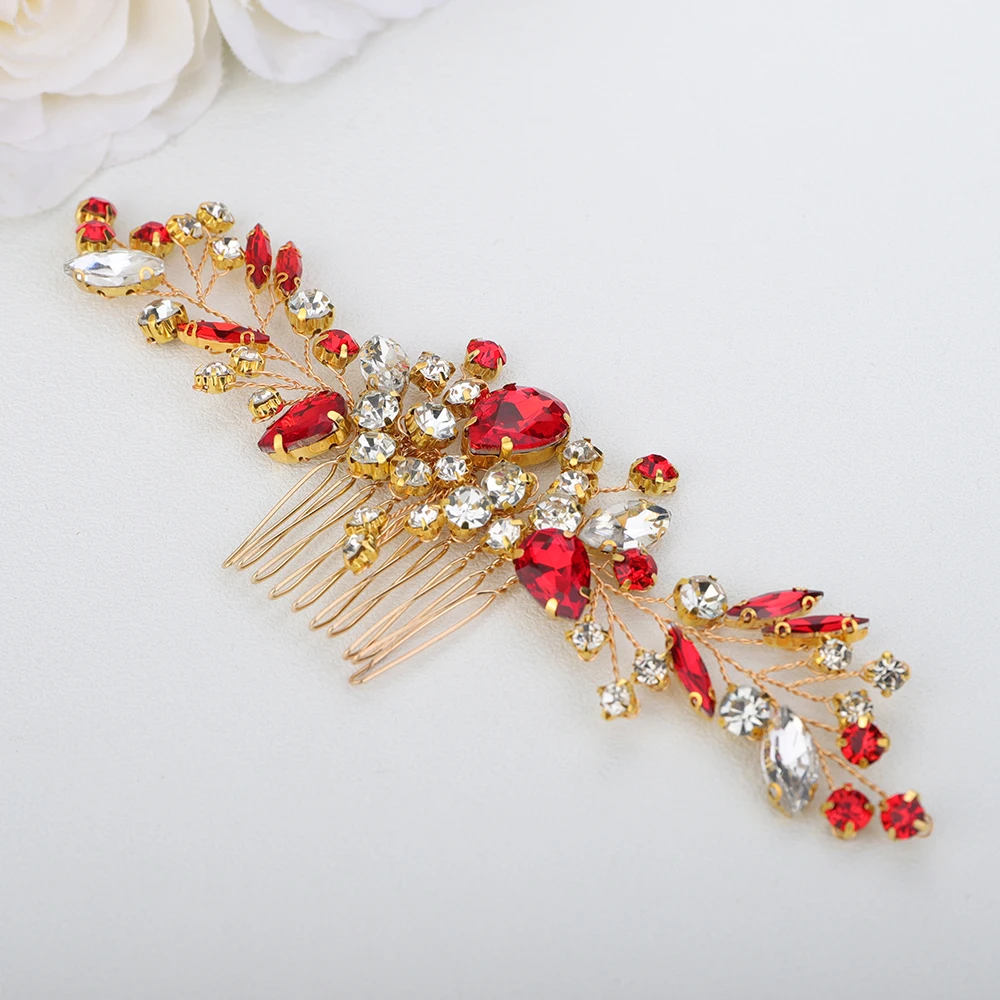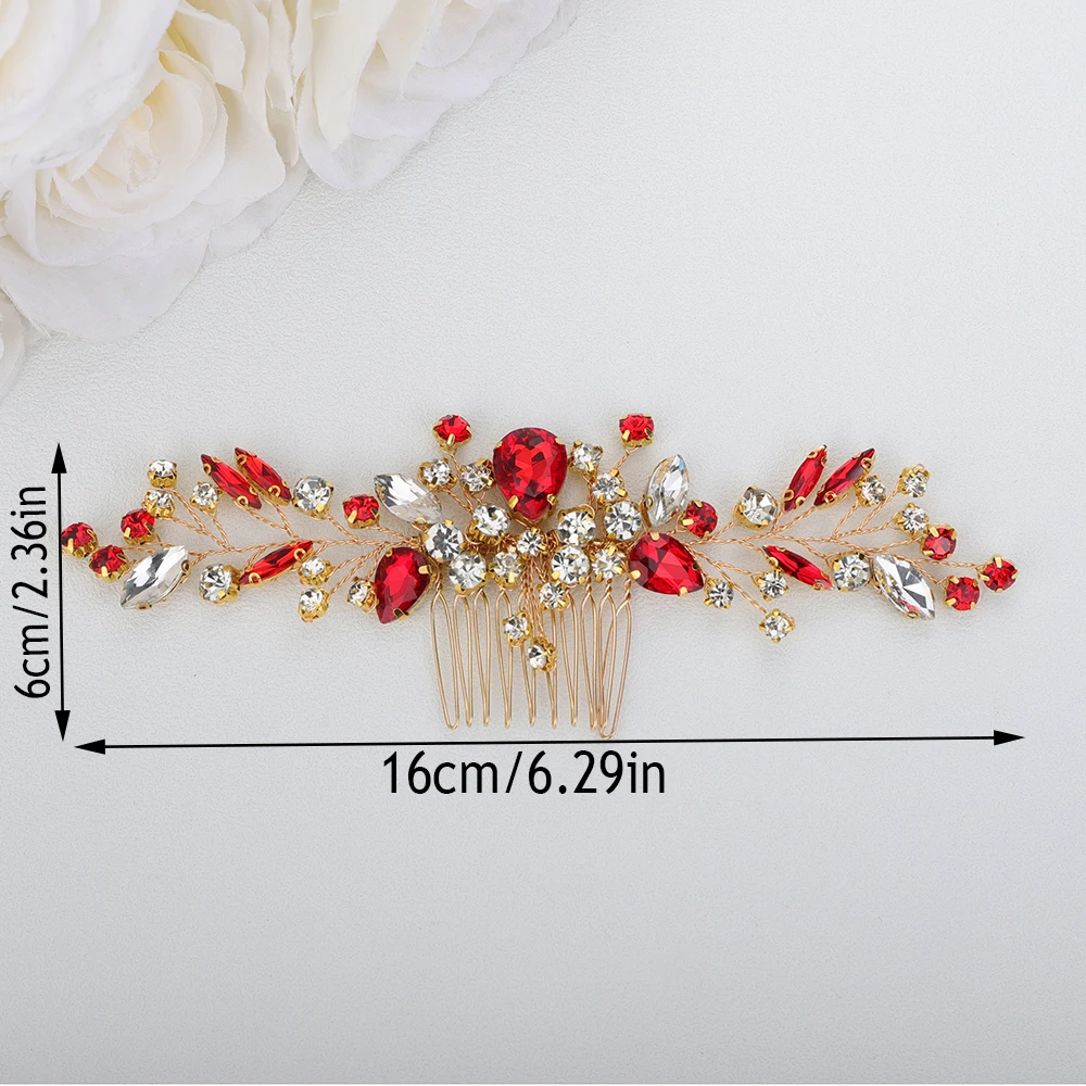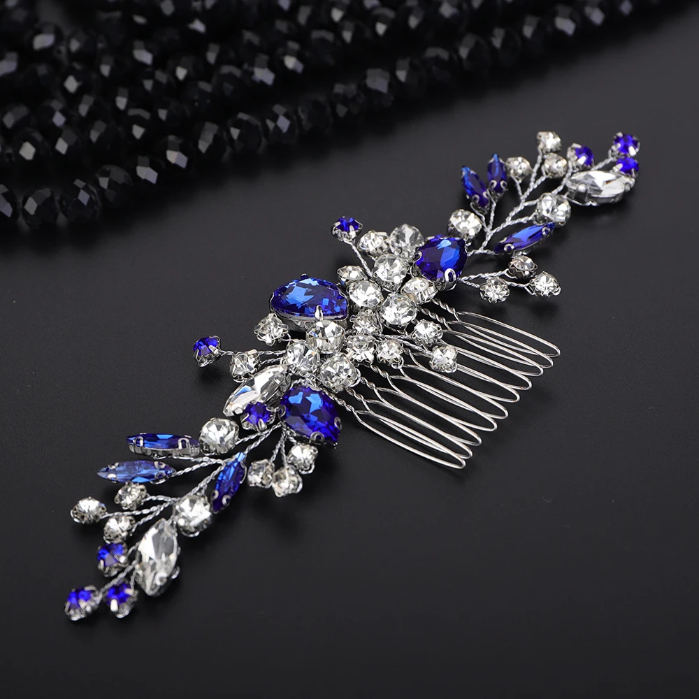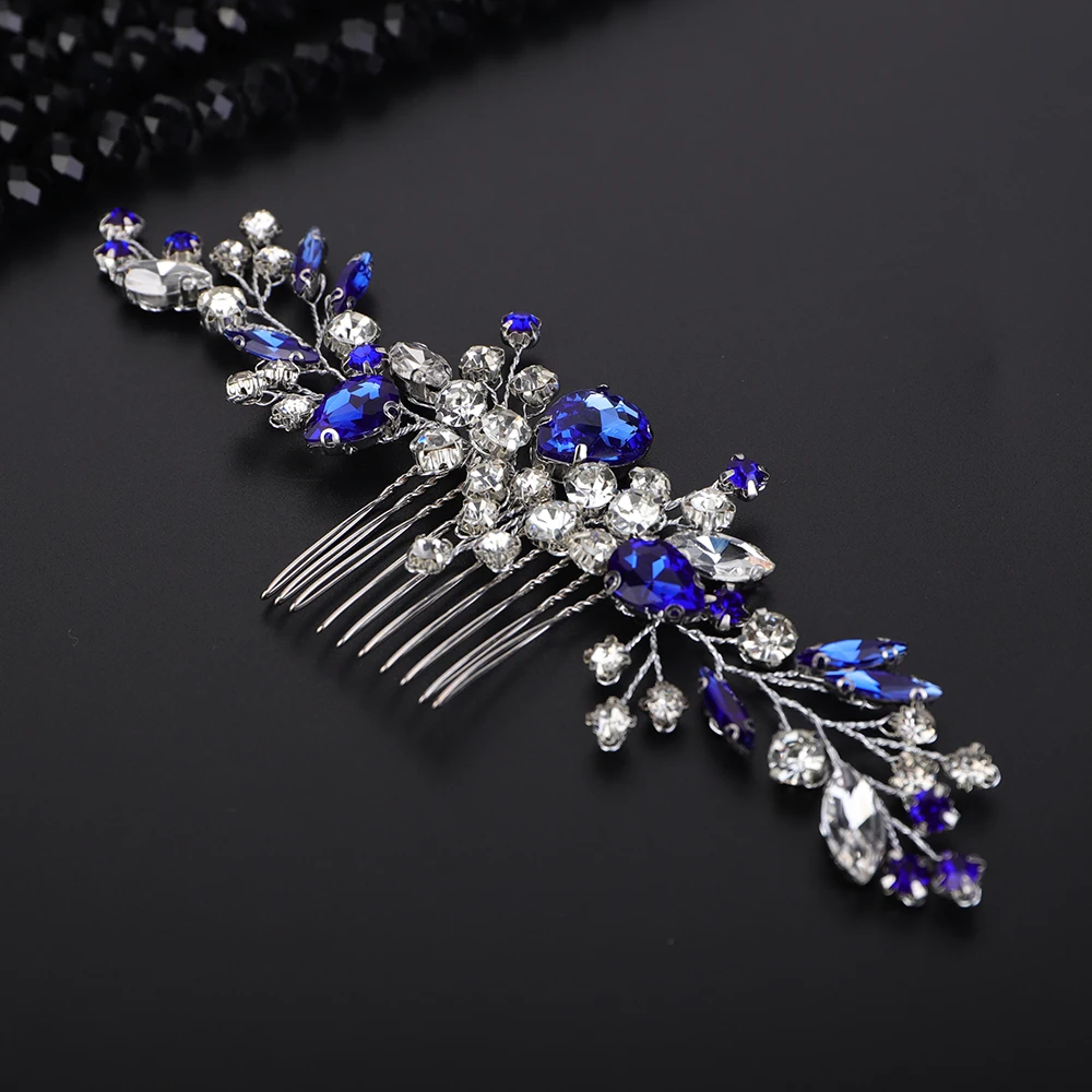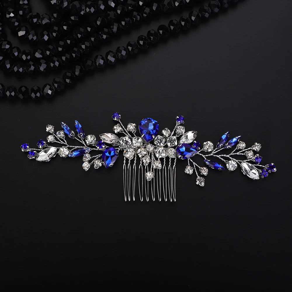 Crystal Flower Bride Hair Accessories Red Wedding Head Jewelry Blue Rhinestone Headdresses Women Hair Comb 9 Colors Headpieces