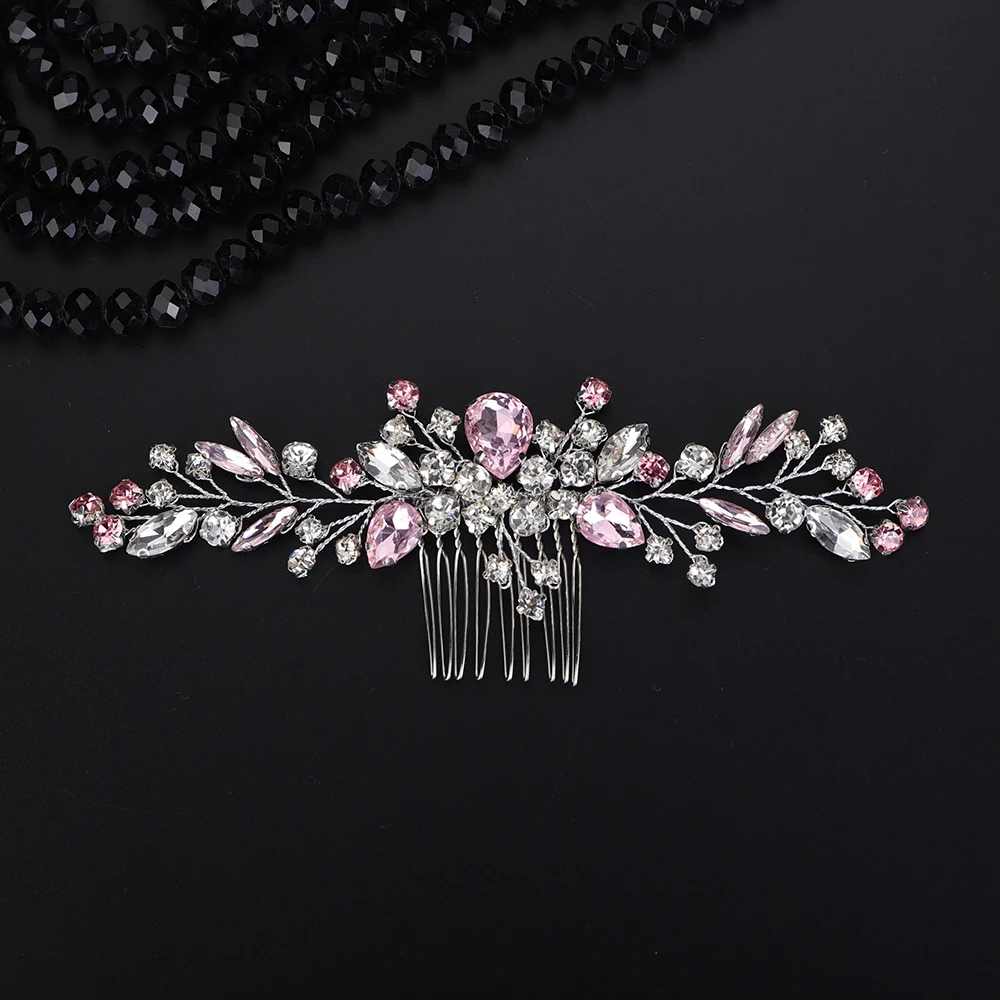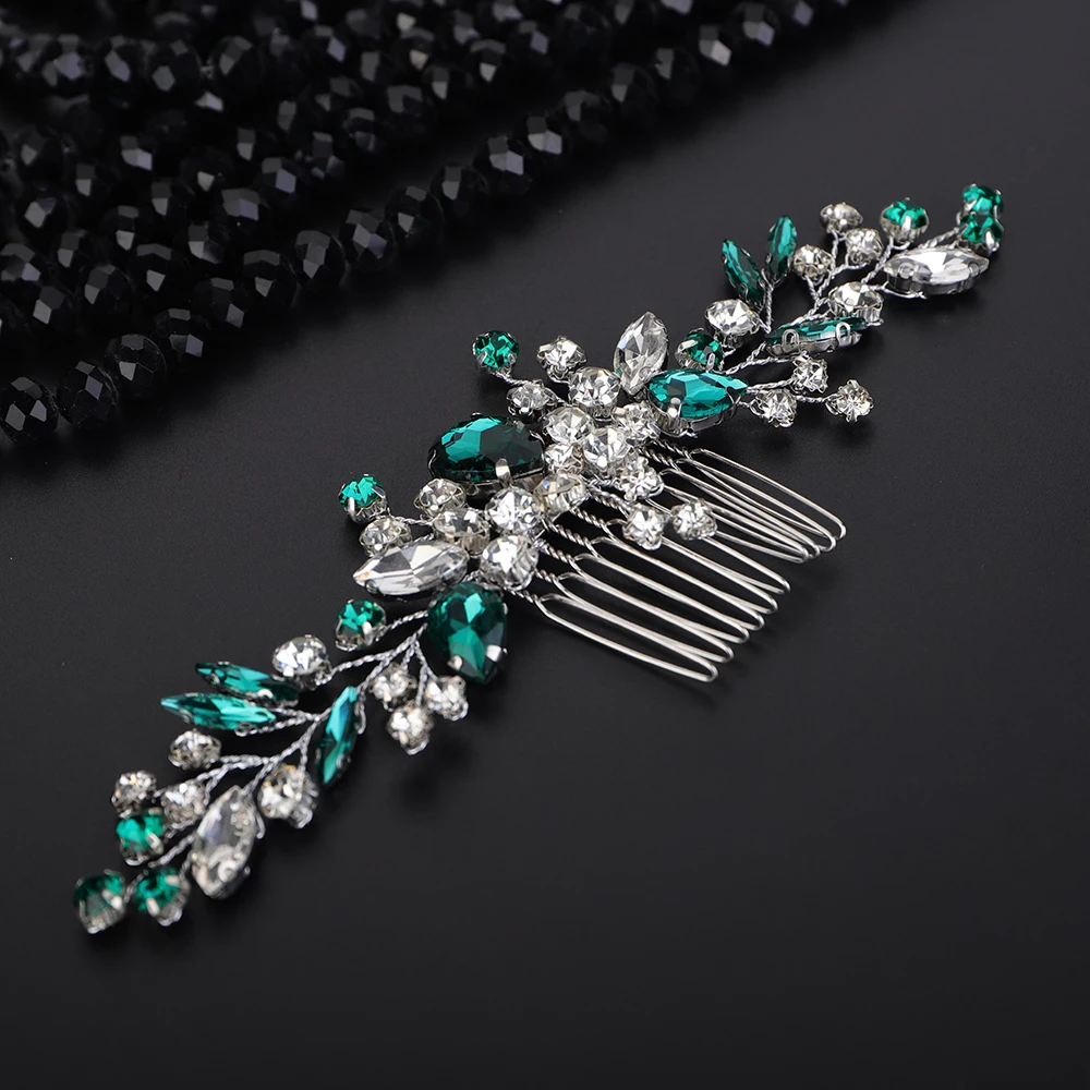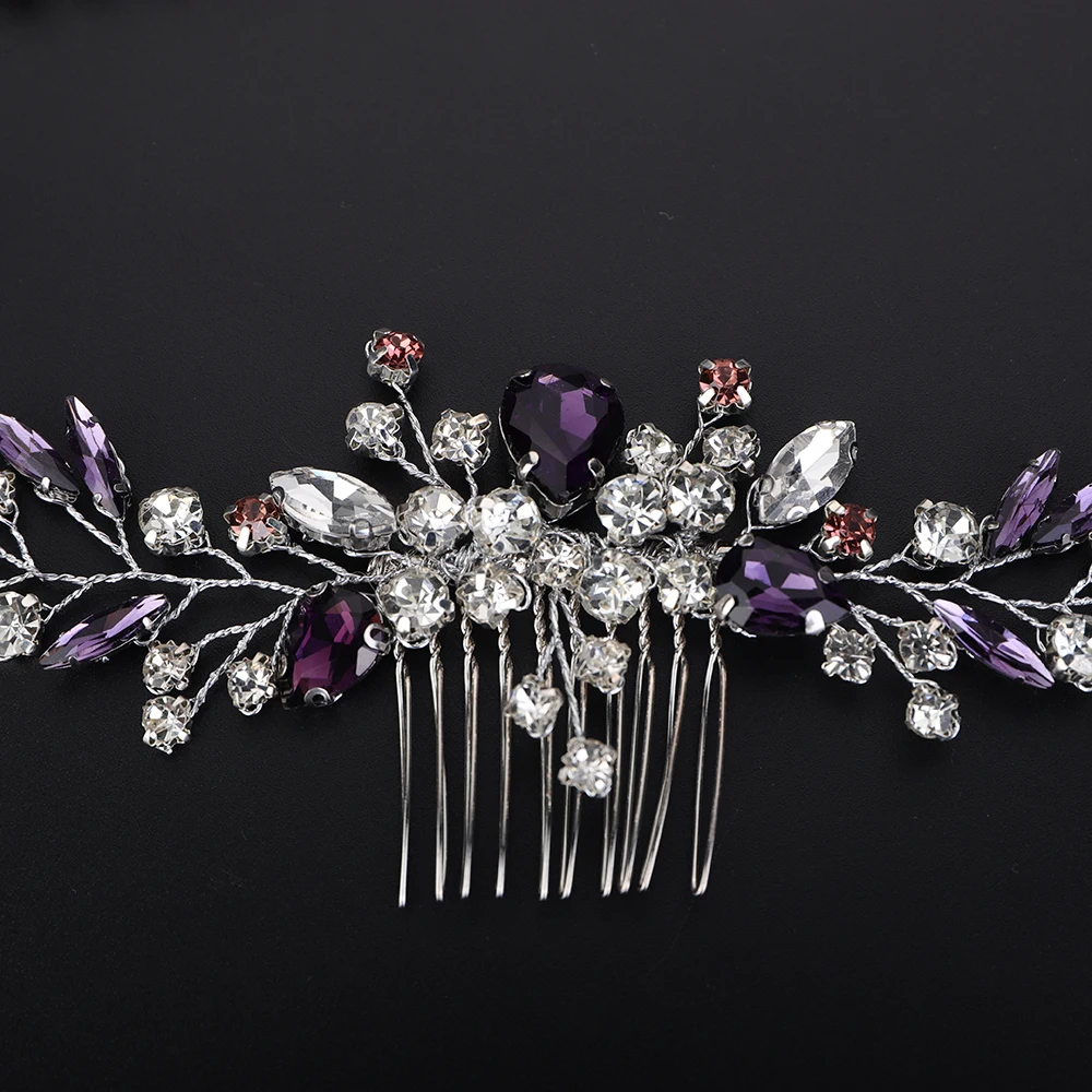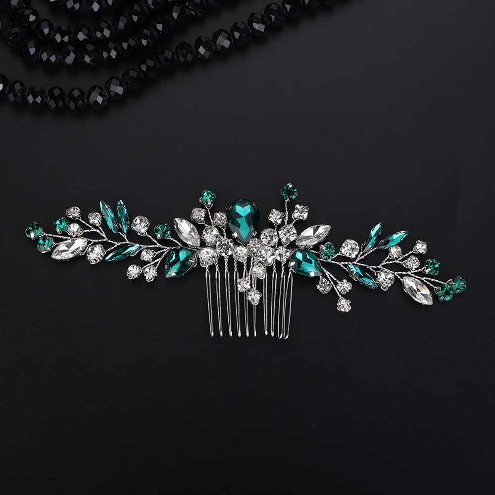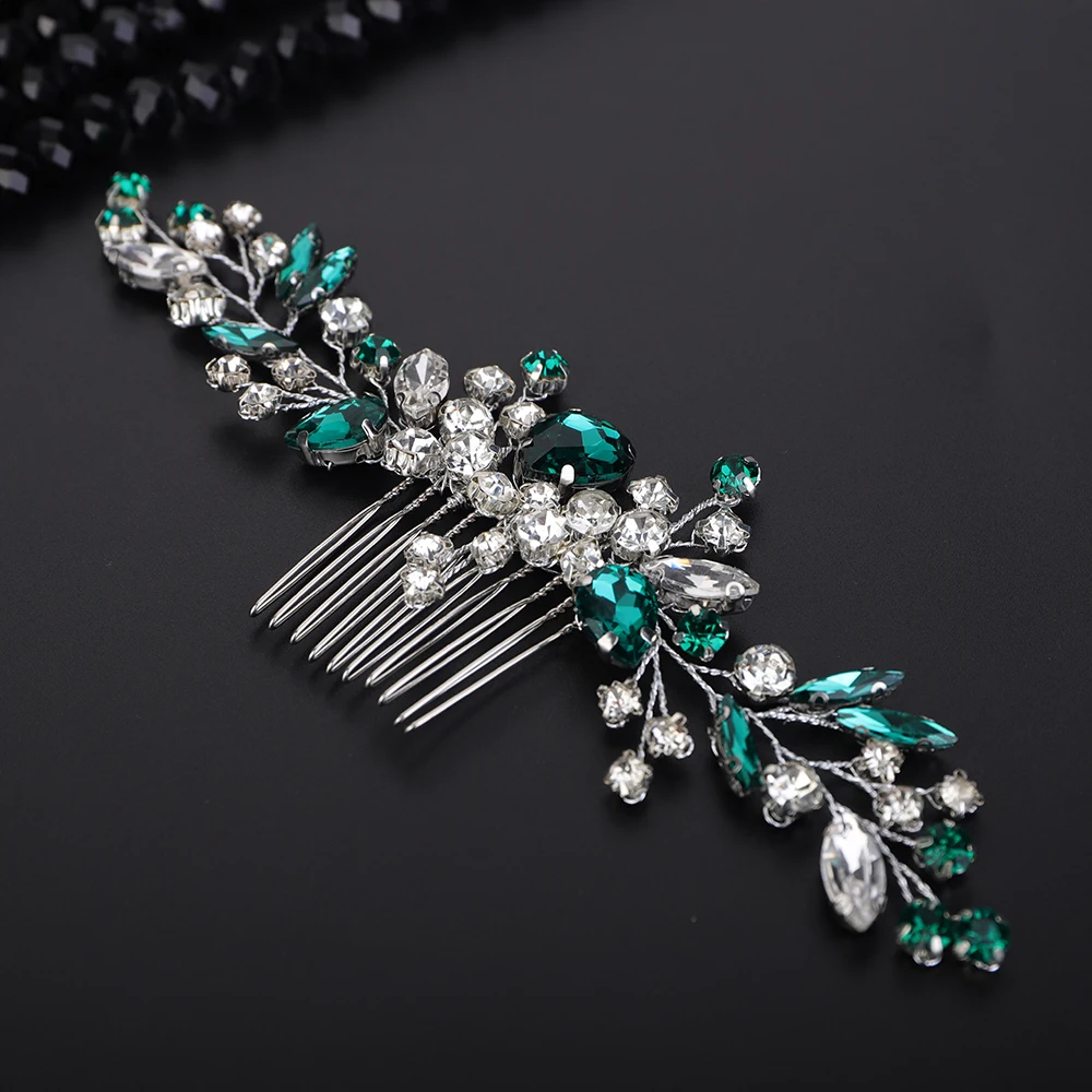 Crystal Flower Bride Hair Accessories Red Wedding Head Jewelry Blue Rhinestone Headdresses Women Hair Comb 9 Colors Headpieces