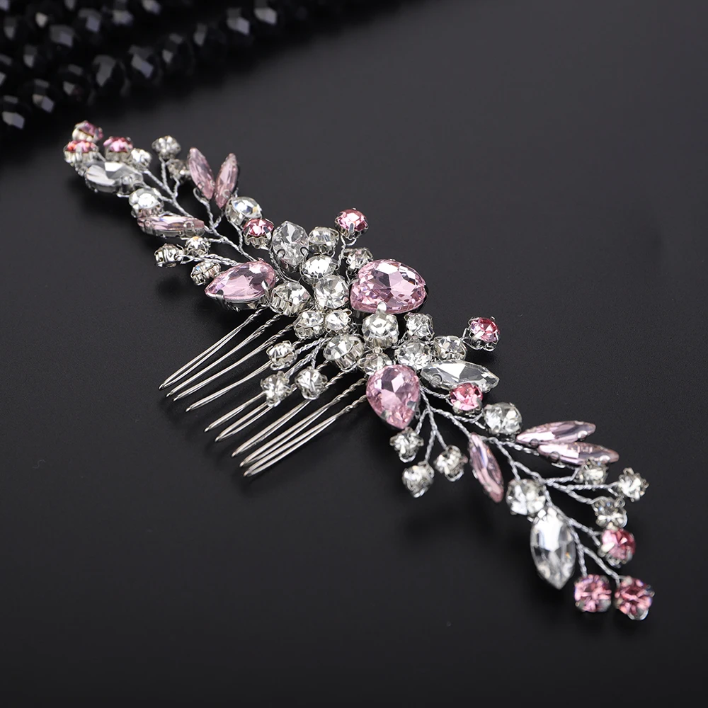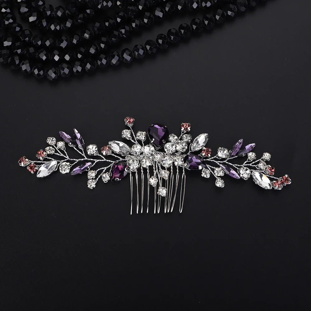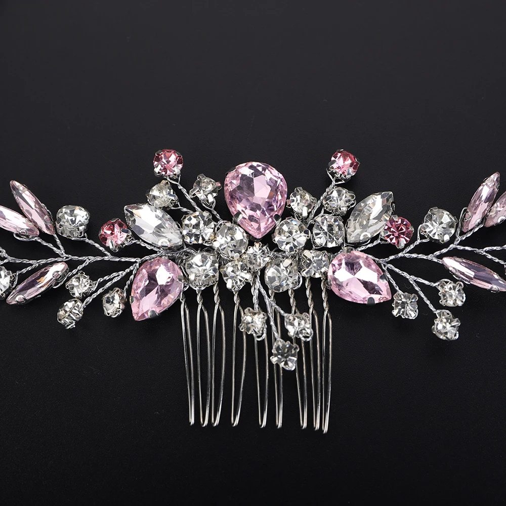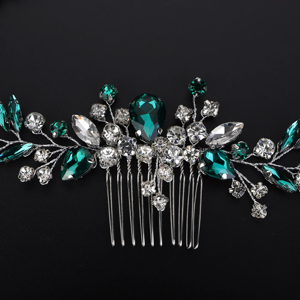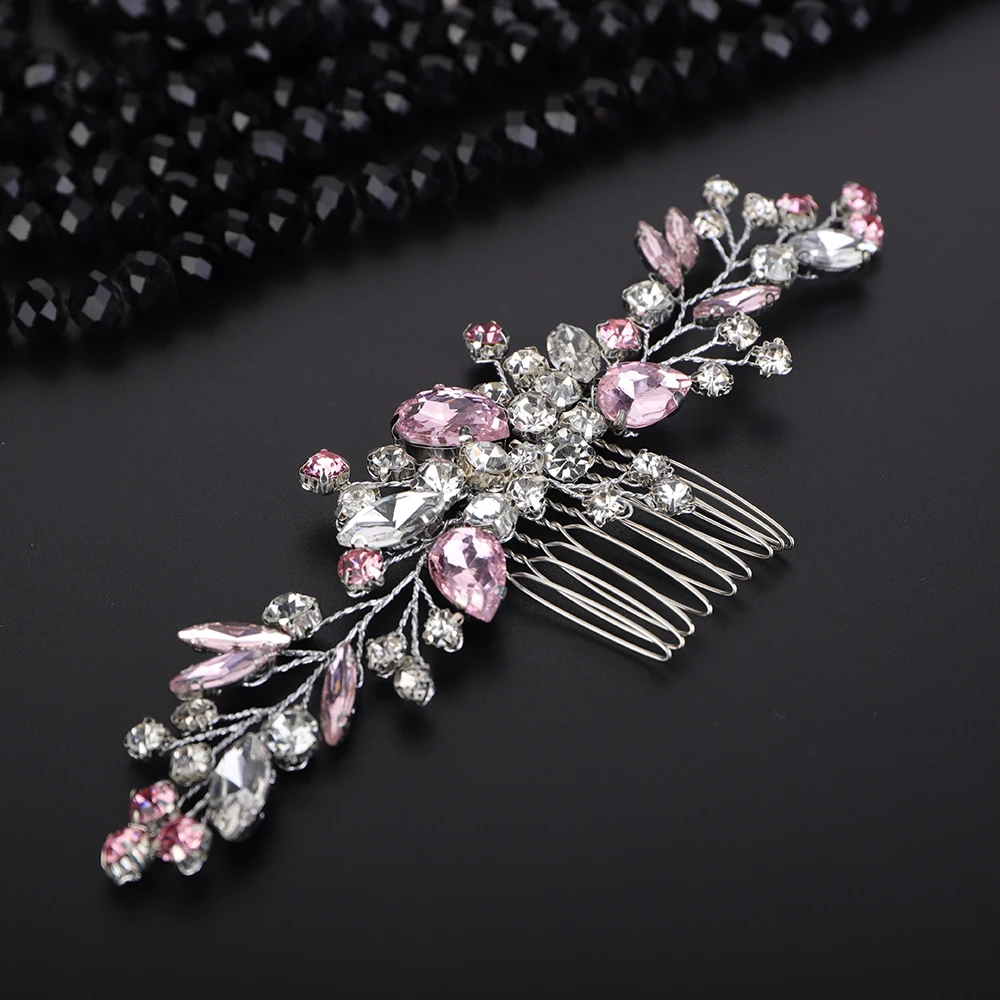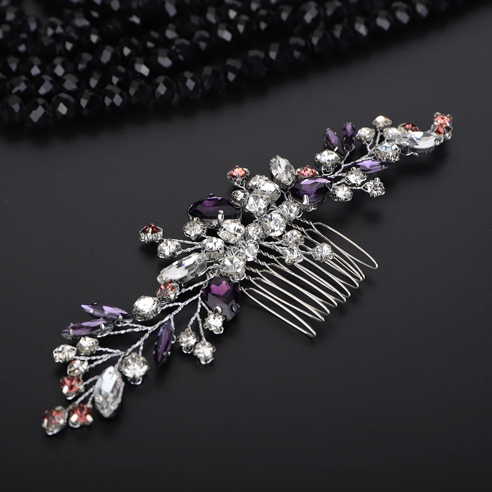 Crystal Flower Bride Hair Accessories Red Wedding Head Jewelry Blue Rhinestone Headdresses Women Hair Comb 9 Colors Headpieces