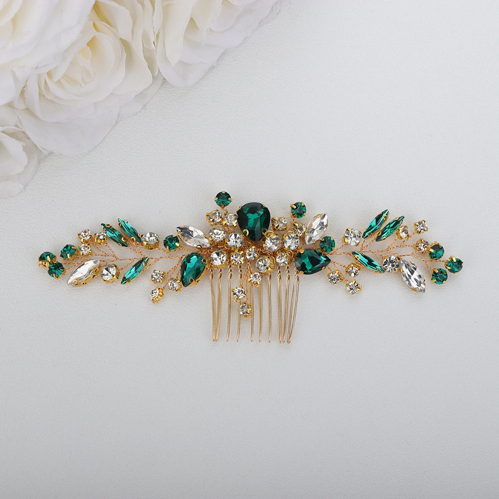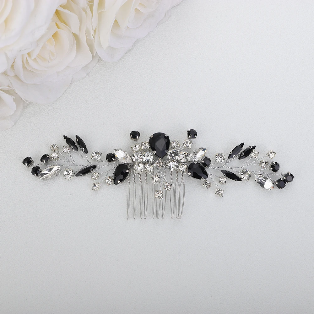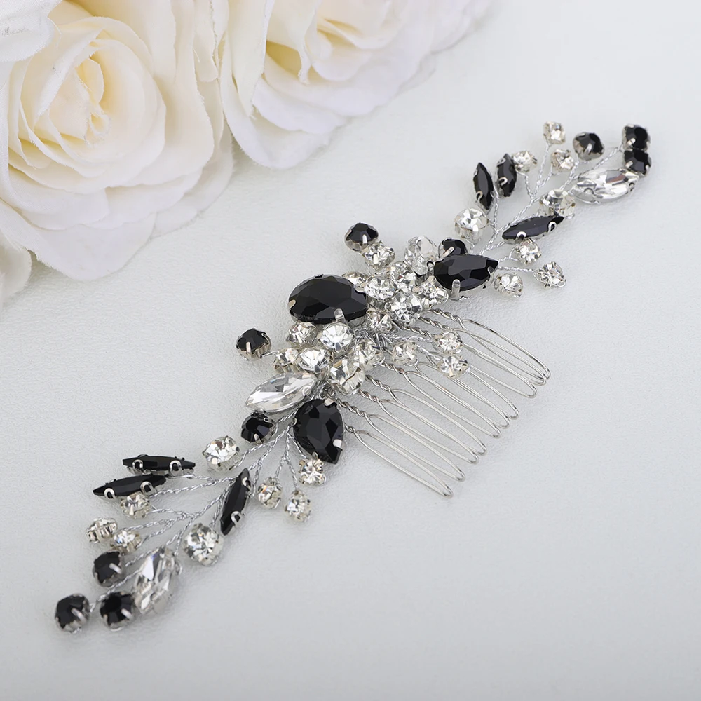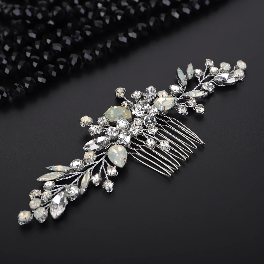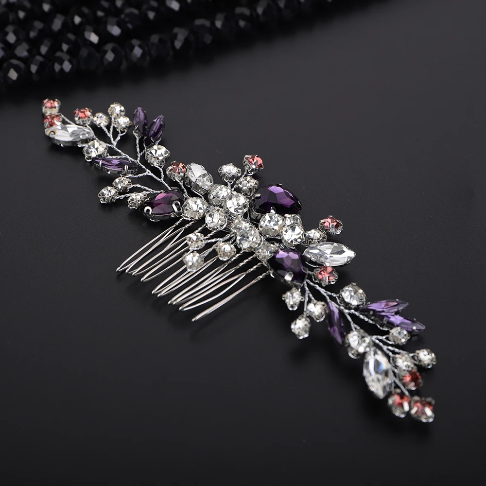 Crystal Flower Bride Hair Accessories Red Wedding Head Jewelry Blue Rhinestone Headdresses Women Hair Comb 9 Colors Headpieces