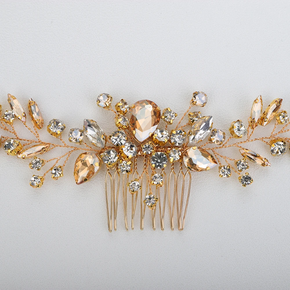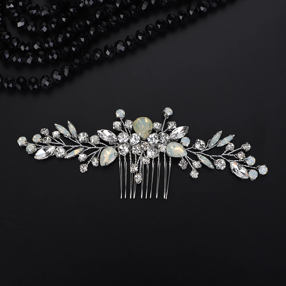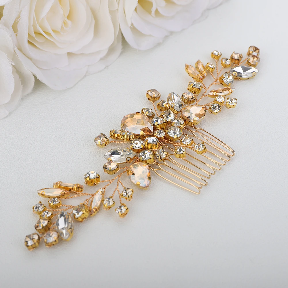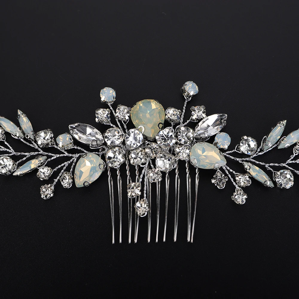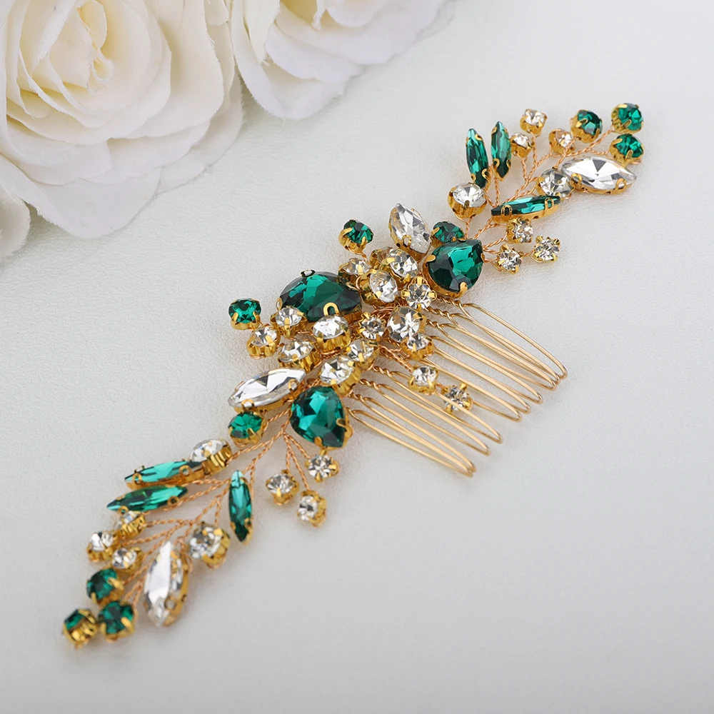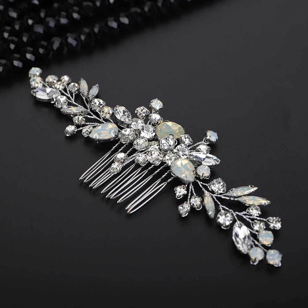 Crystal Flower Bride Hair Accessories Red Wedding Head Jewelry Blue Rhinestone Headdresses Women Hair Comb 9 Colors Headpieces