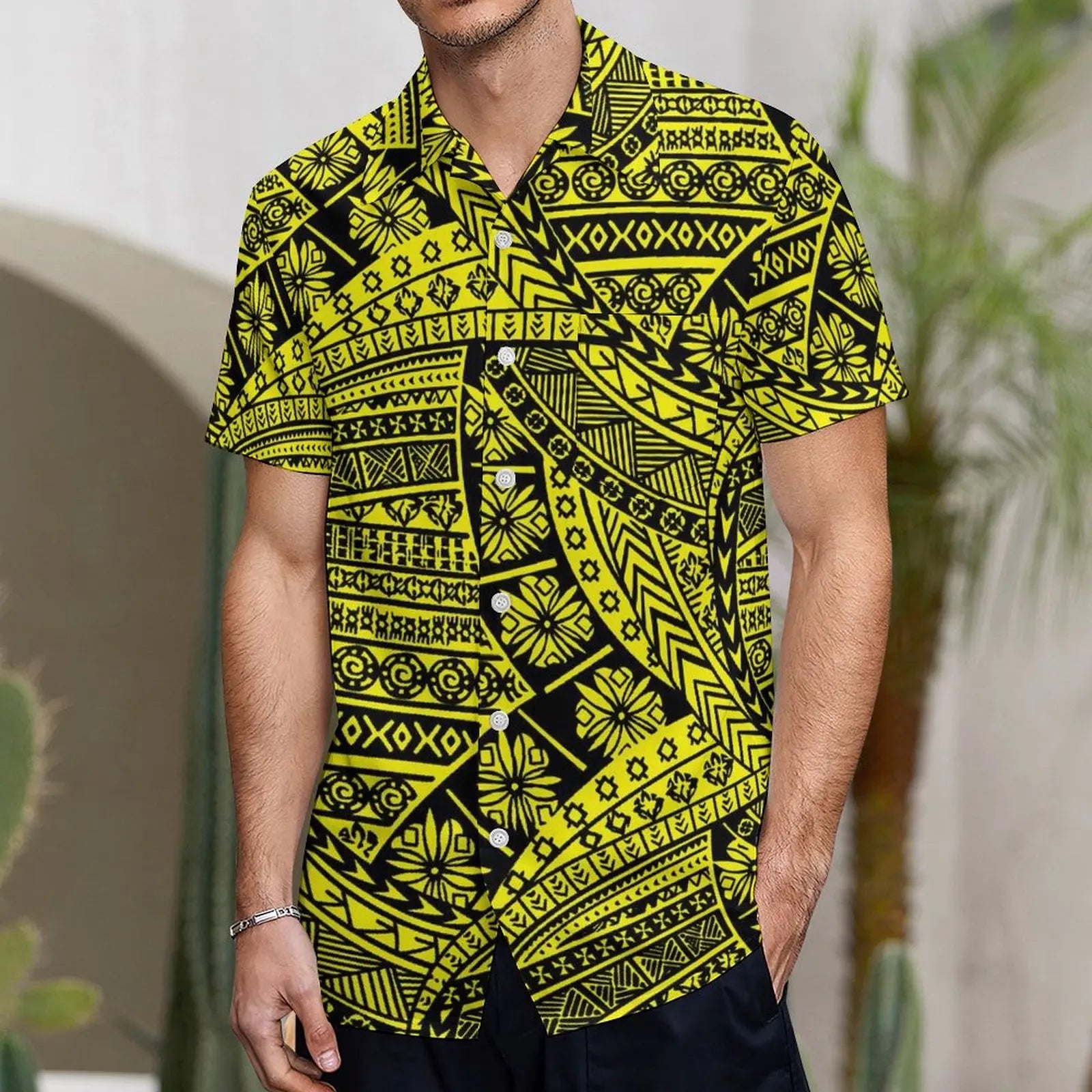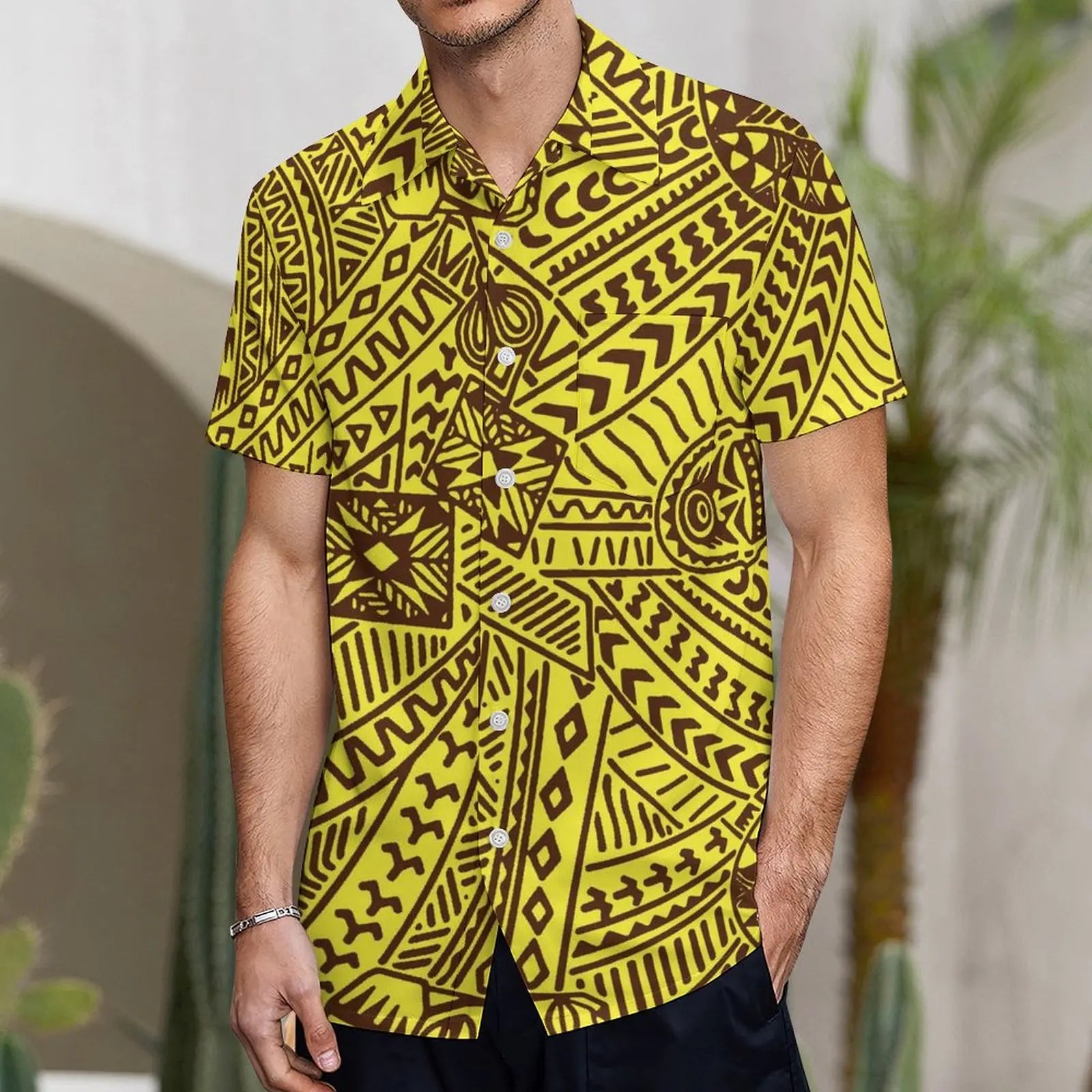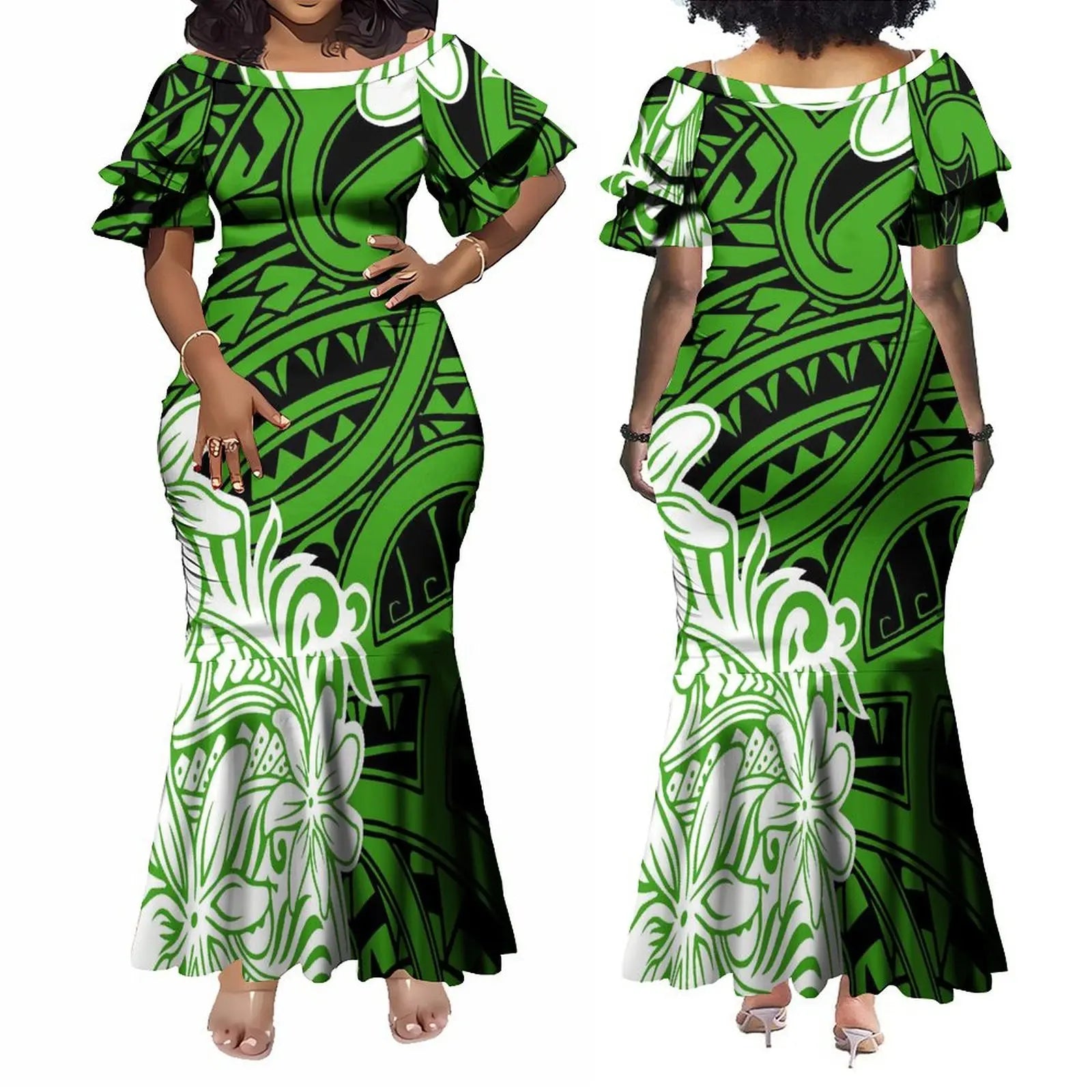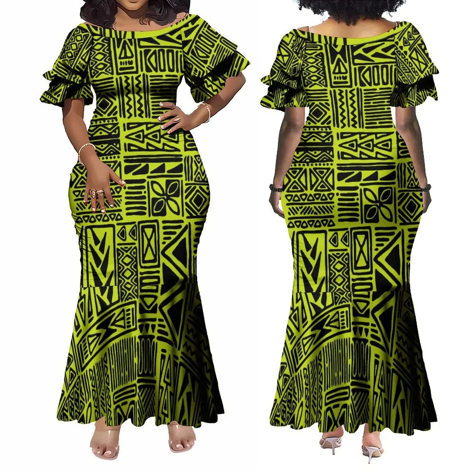 Custom Polynesian Tribal Couple Set Samoan Women'S Temperament Slim Dress Women'S Mermaid Maxi Skirt Men'S Shirt